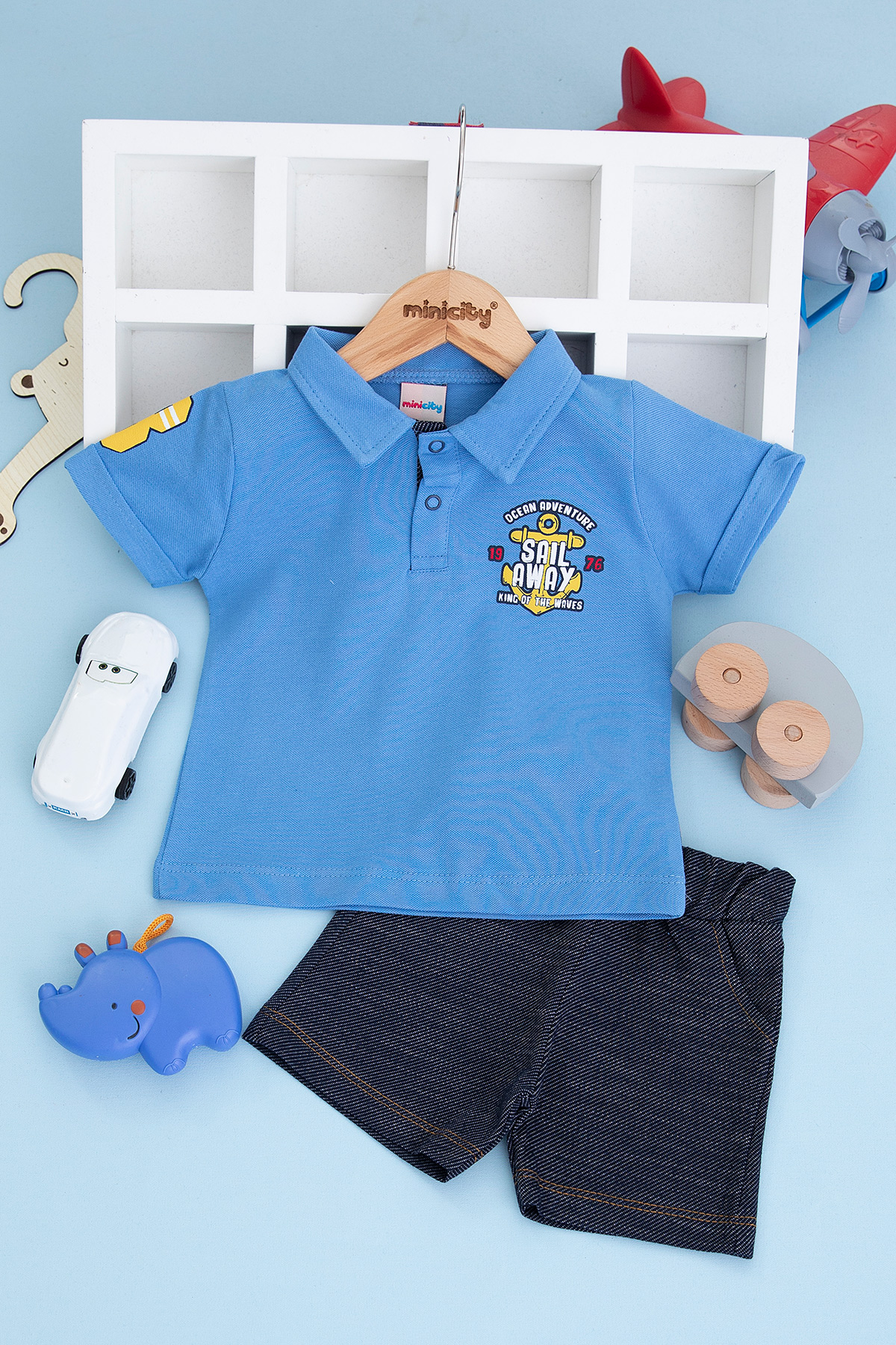 Erkek Bebek Sail Away Baskılı Şortlu Takım - 23088 (9-24 Ay)