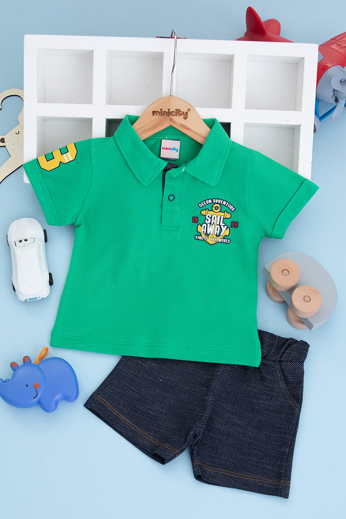 Erkek Bebek Sail Away Baskılı Şortlu Takım - 23088 (9-24 Ay)