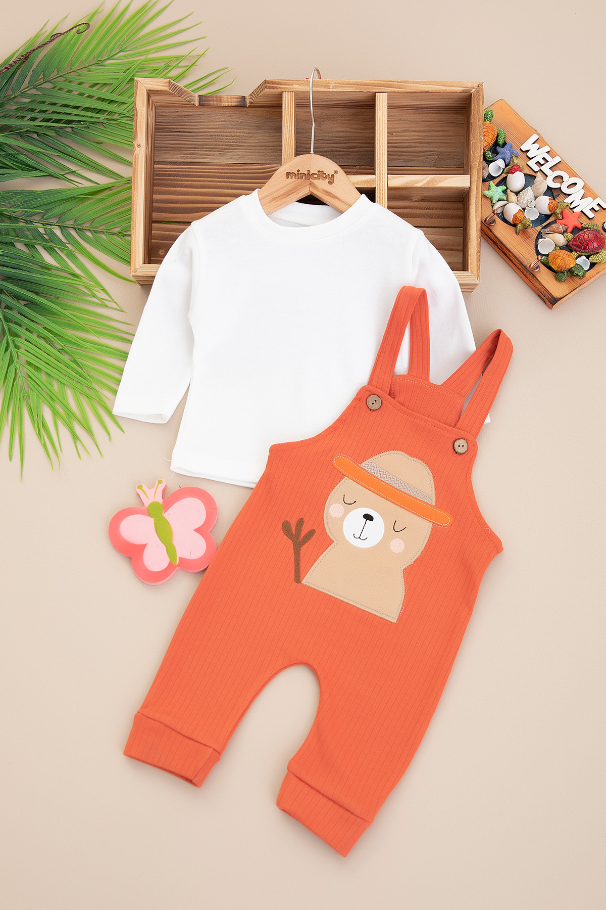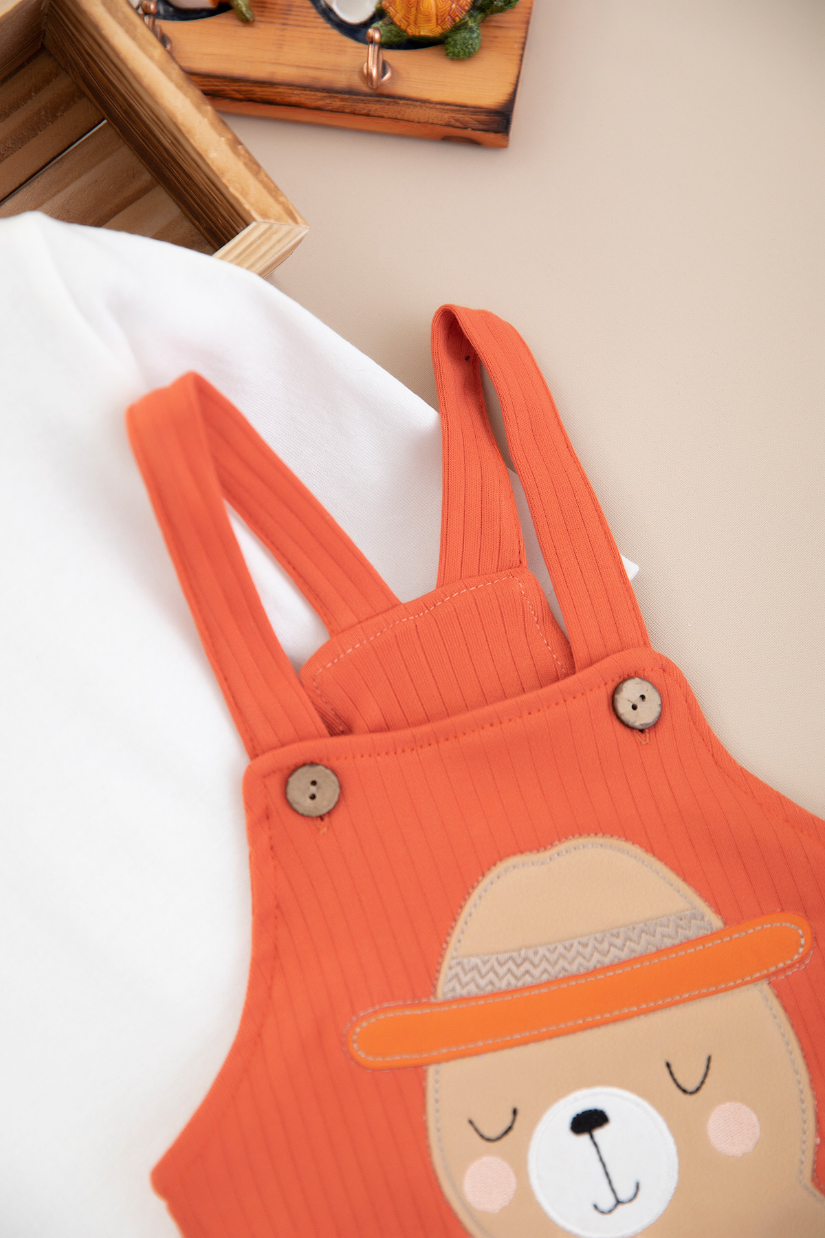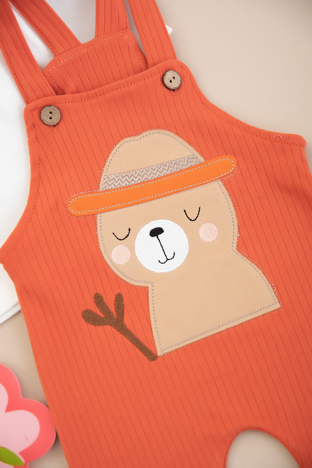 Erkek Bebek Şapkalı Ayı Fitilli Badili Tulum (6-24 Ay)