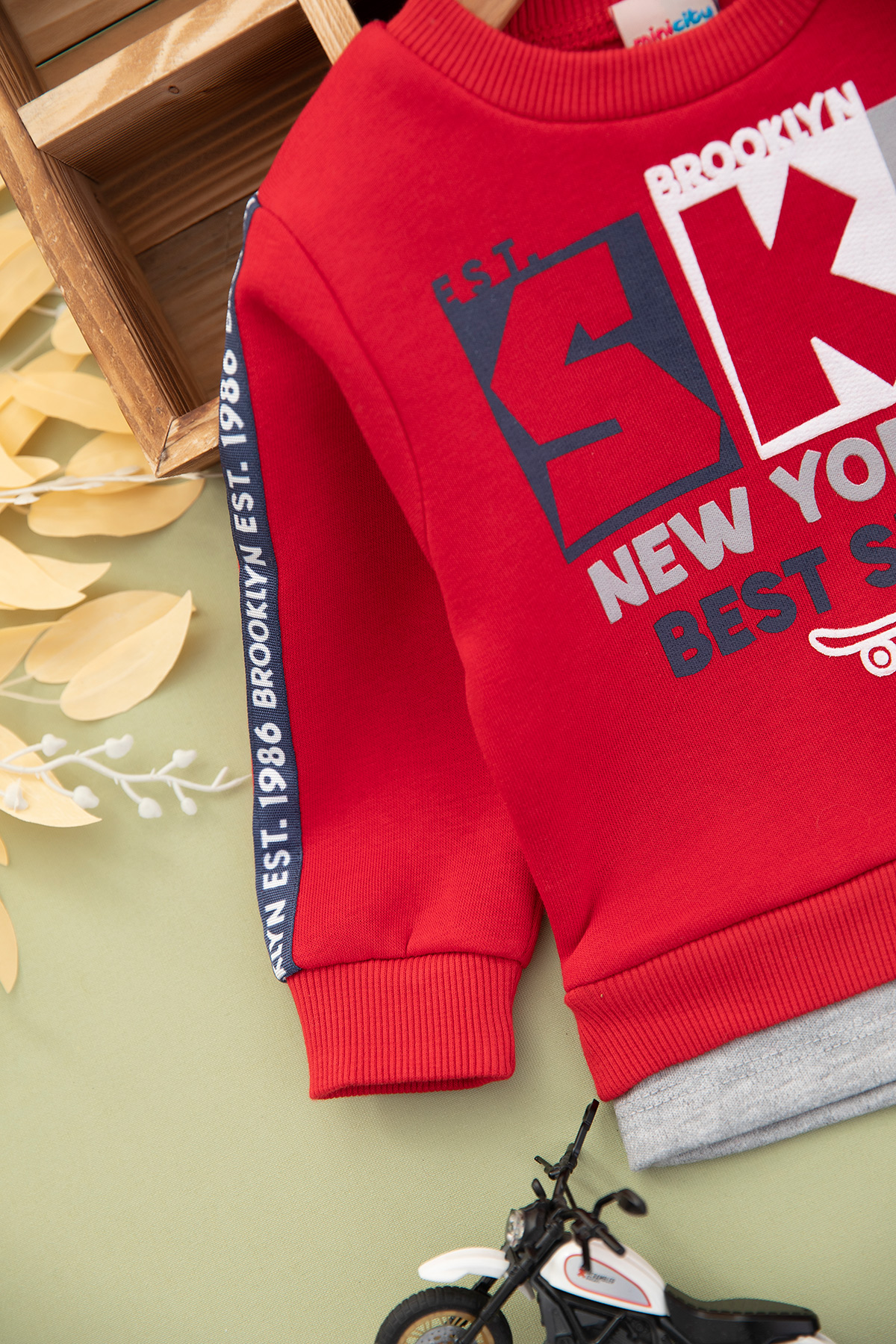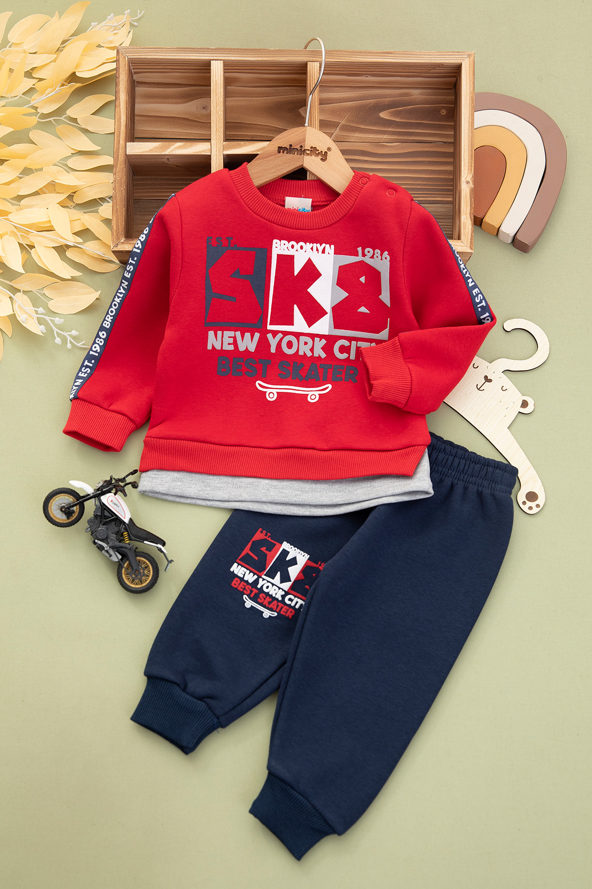 Erkek Bebek Şerit Kollu Üç İp Takım - 24752 (9-24 Ay)