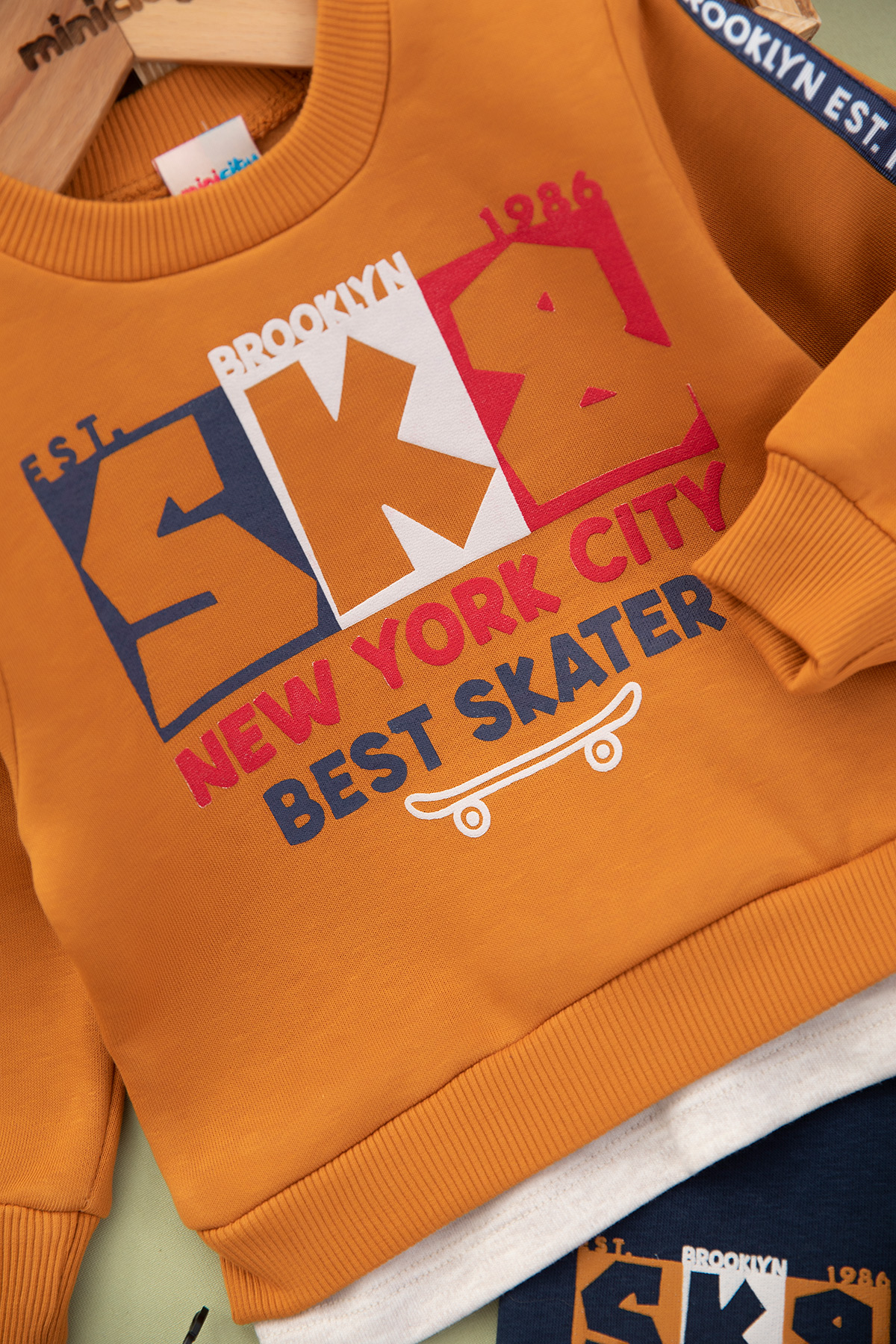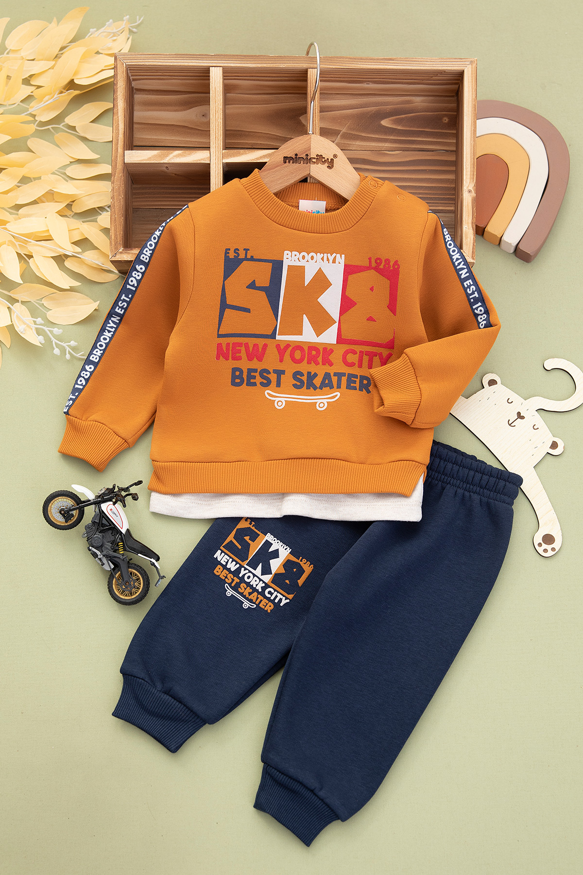 Erkek Bebek Şerit Kollu Üç İp Takım - 24752 (9-24 Ay)