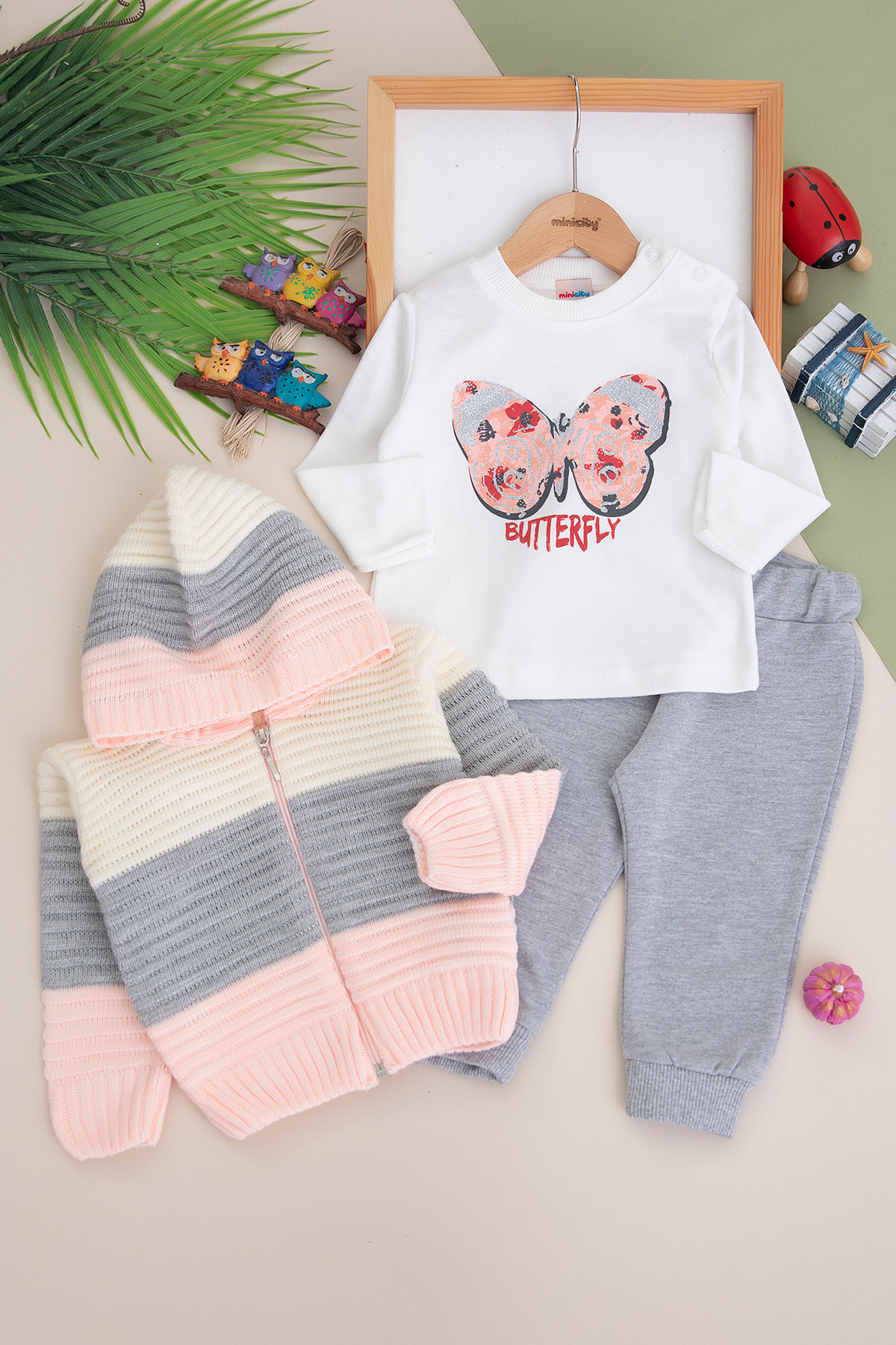 Erkek Bebek Şerit Örmeli Triko Üçlü Takım - 13793 (6-24 Ay)