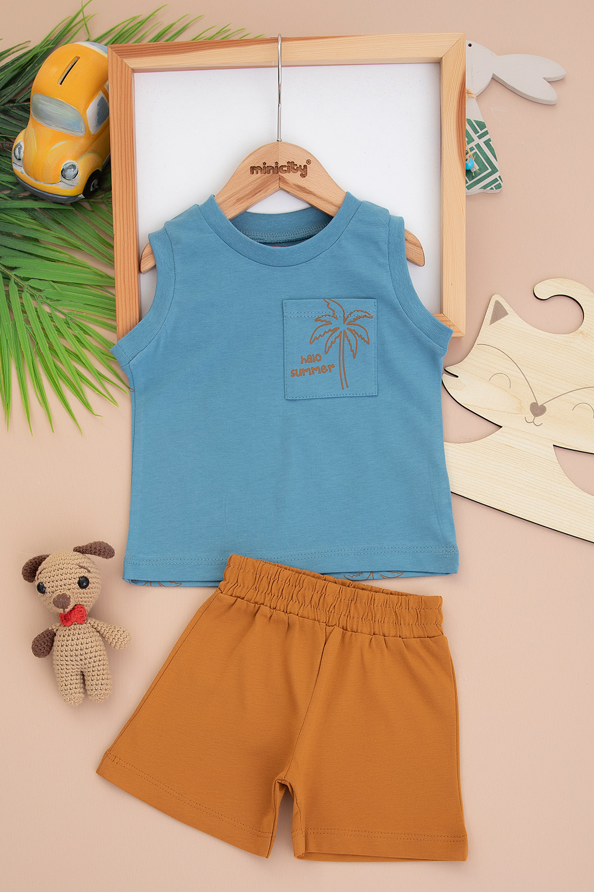 Erkek Bebek Sırt Palmiye Şortlu Takım - 24301 (9-24 Ay)