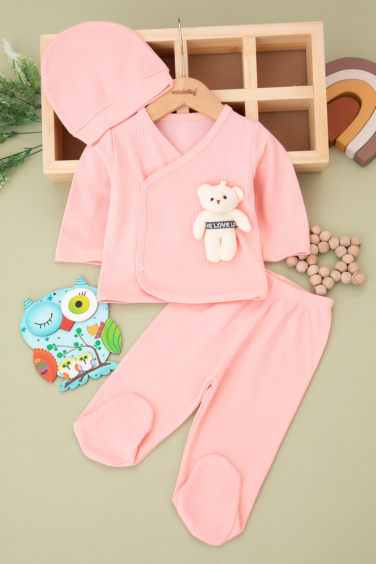 Erkek Bebek Şişme Ayıcıklı 3`lü Zıbın Takım - 5469 (0-3 Ay)
