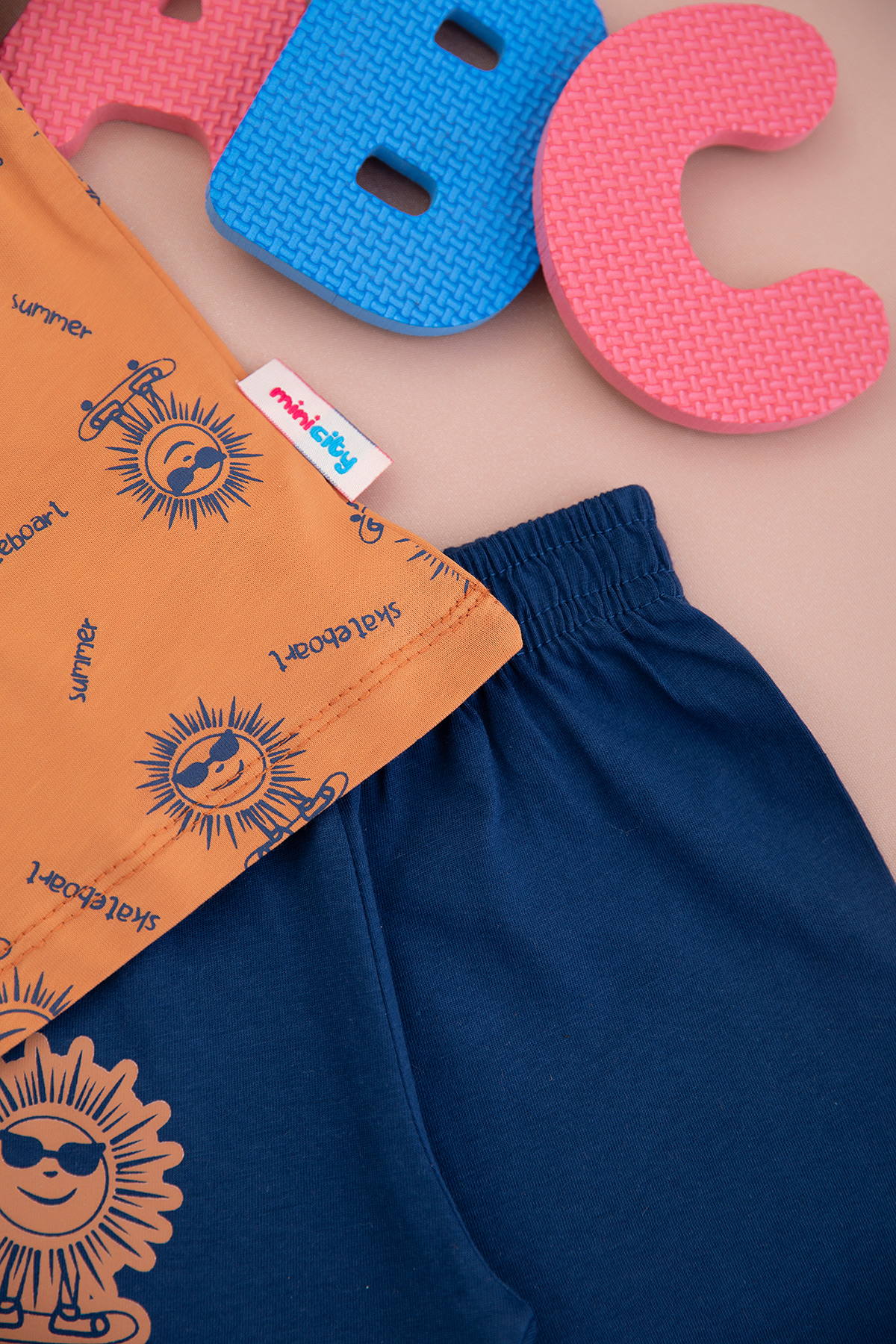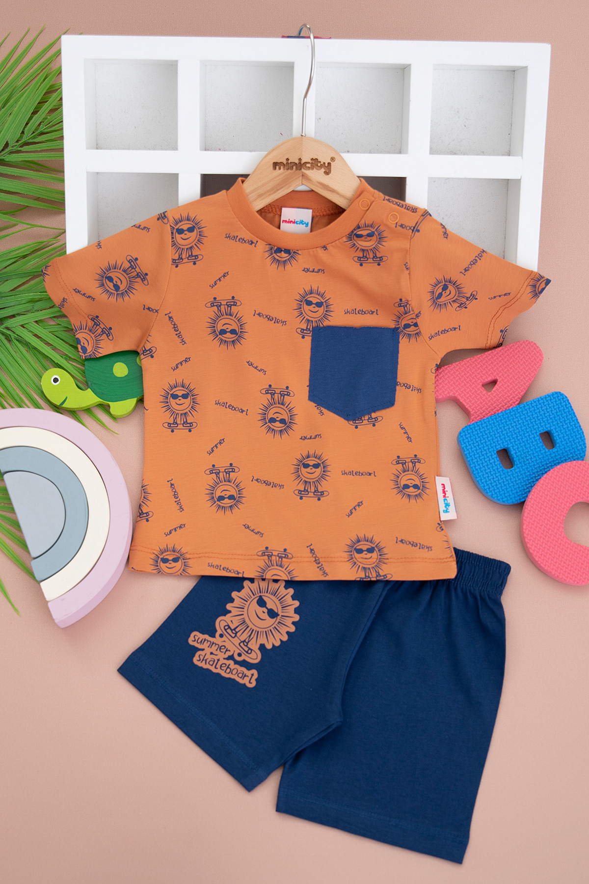 Erkek Bebek Skate Boart Baskılı Şortlu Takım - 23228 (9-24 Ay)