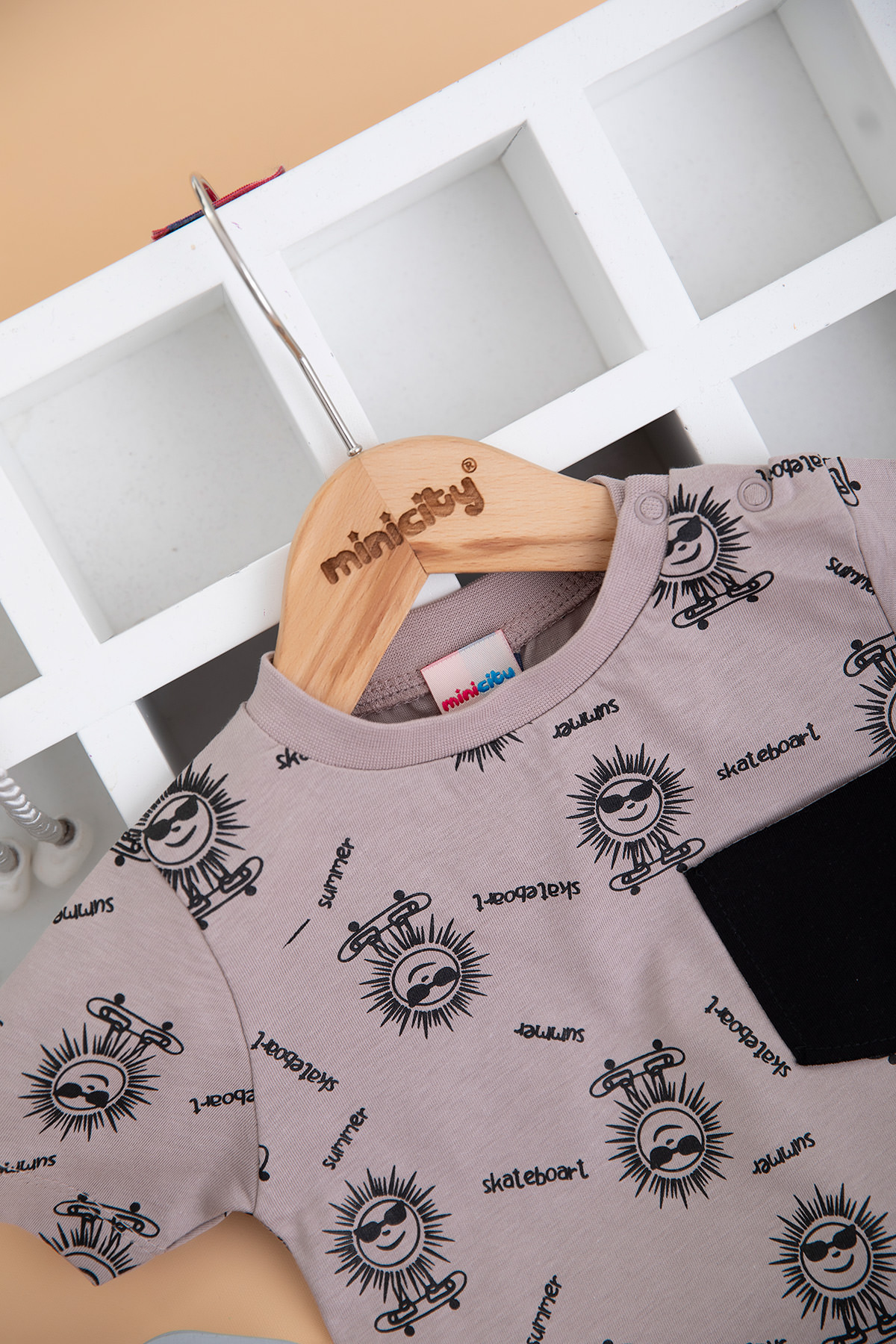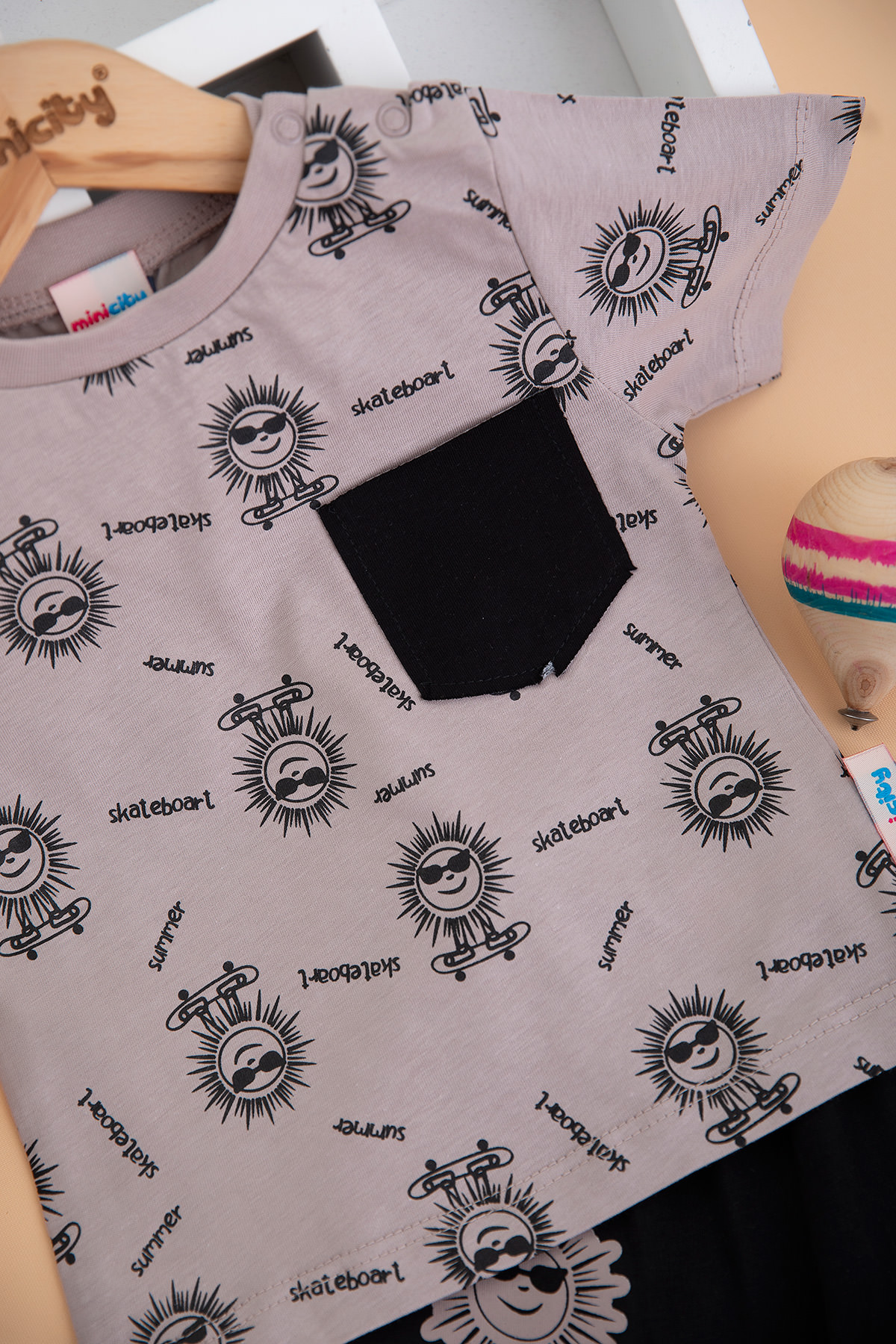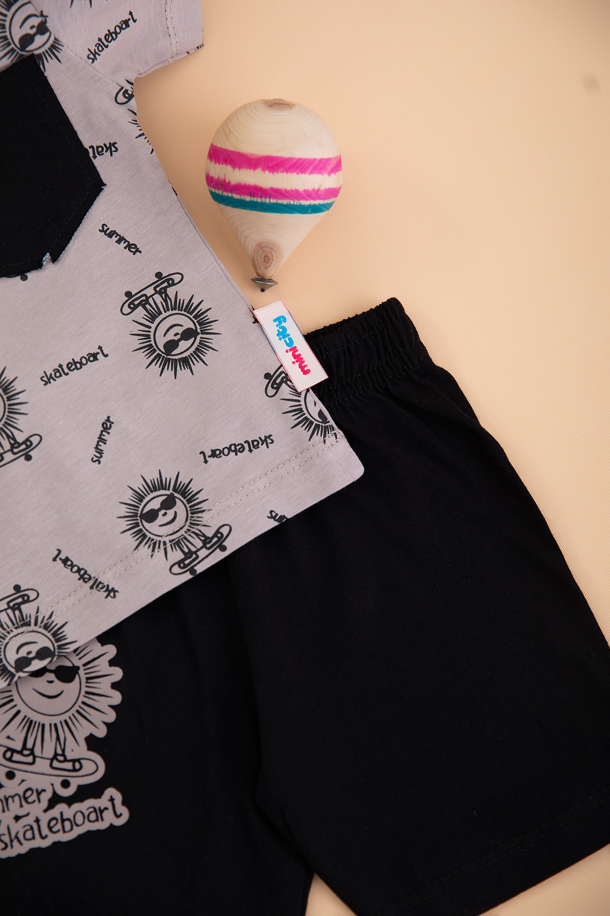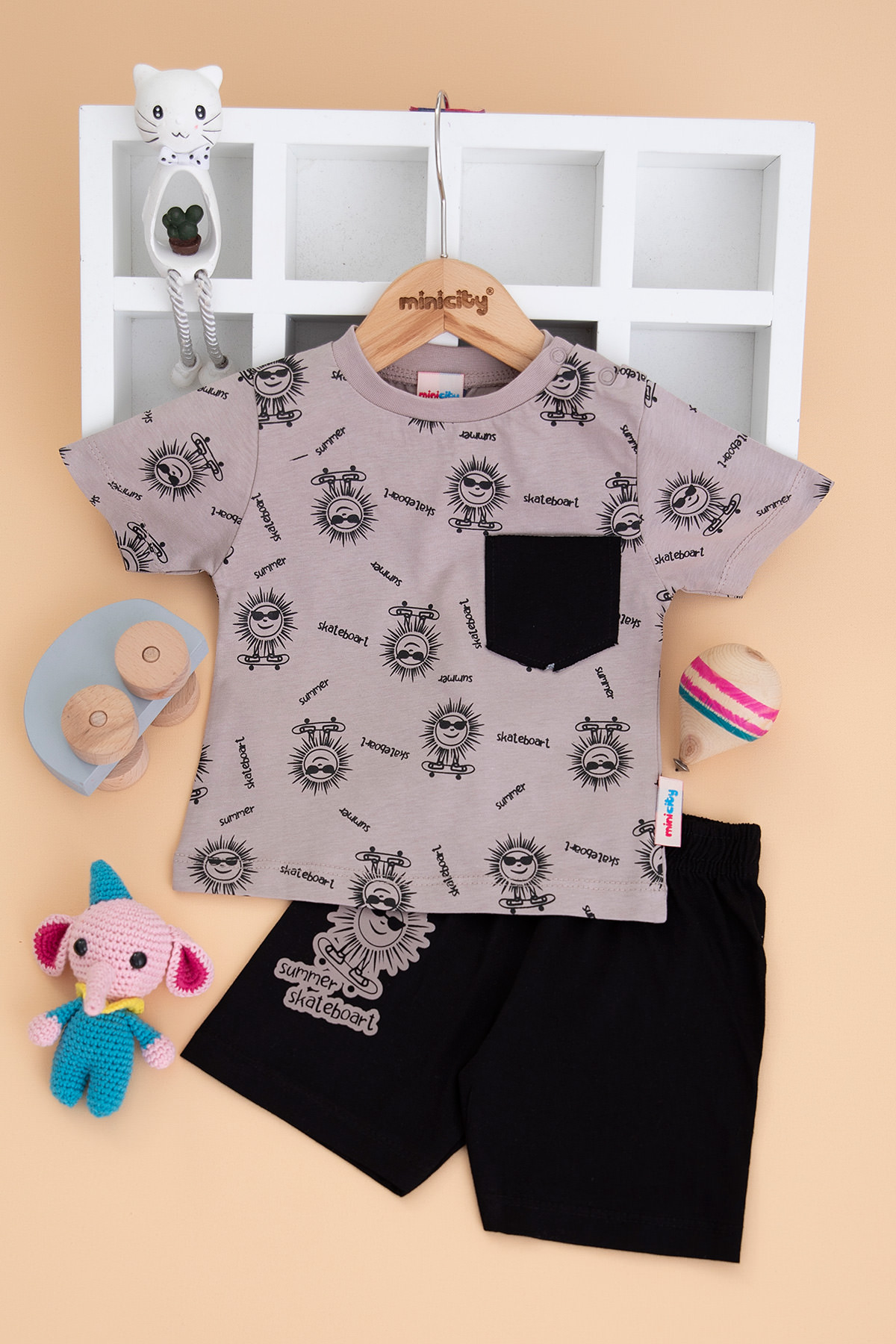 Erkek Bebek Skate Boart Baskılı Şortlu Takım - 23228 (9-24 Ay)
