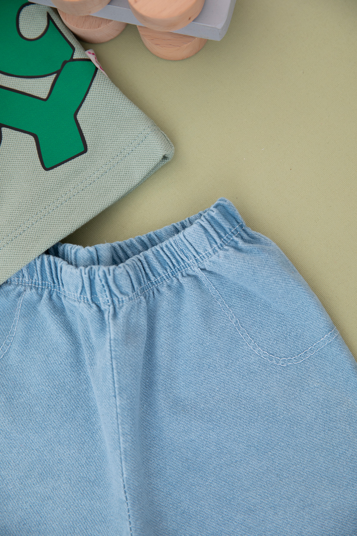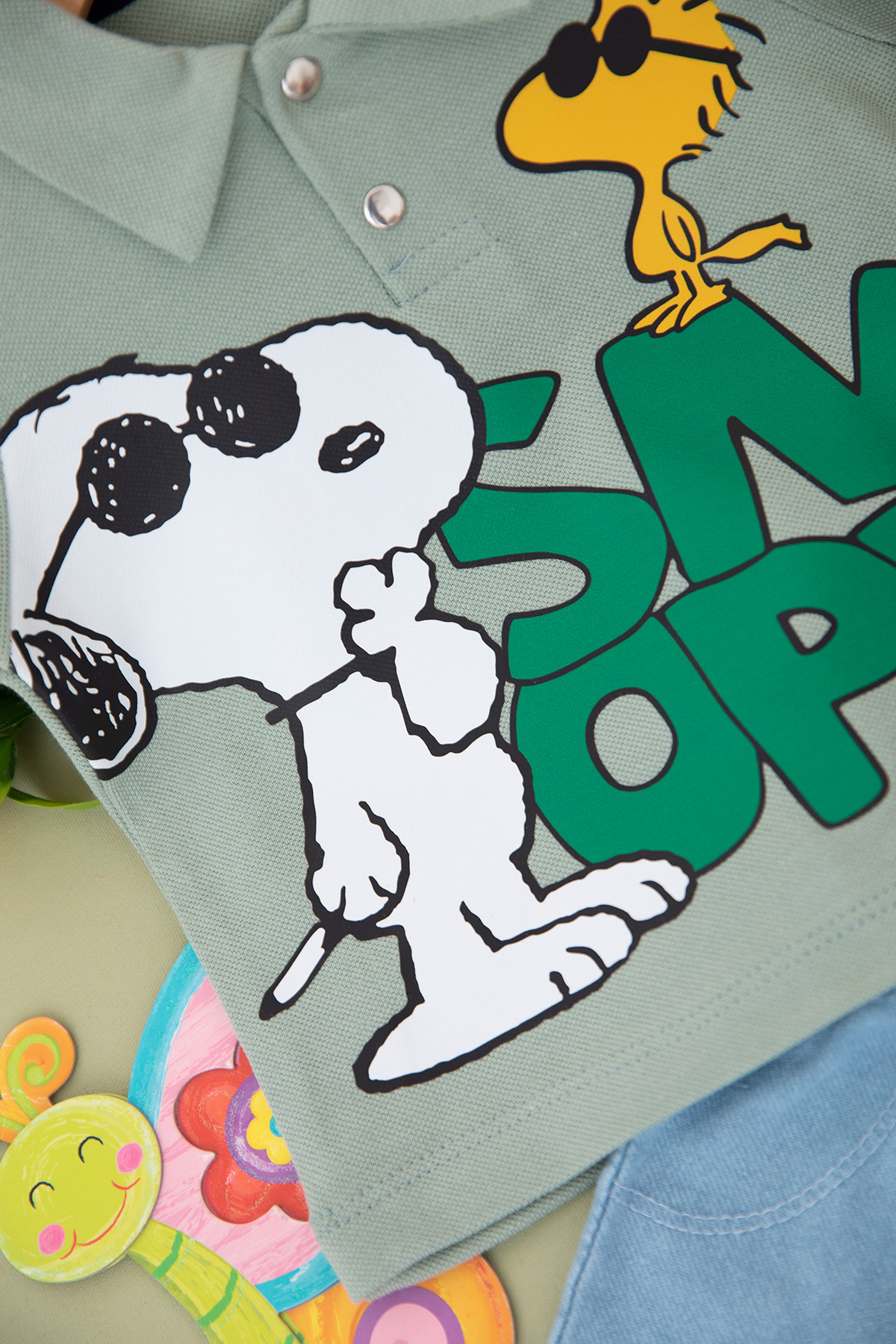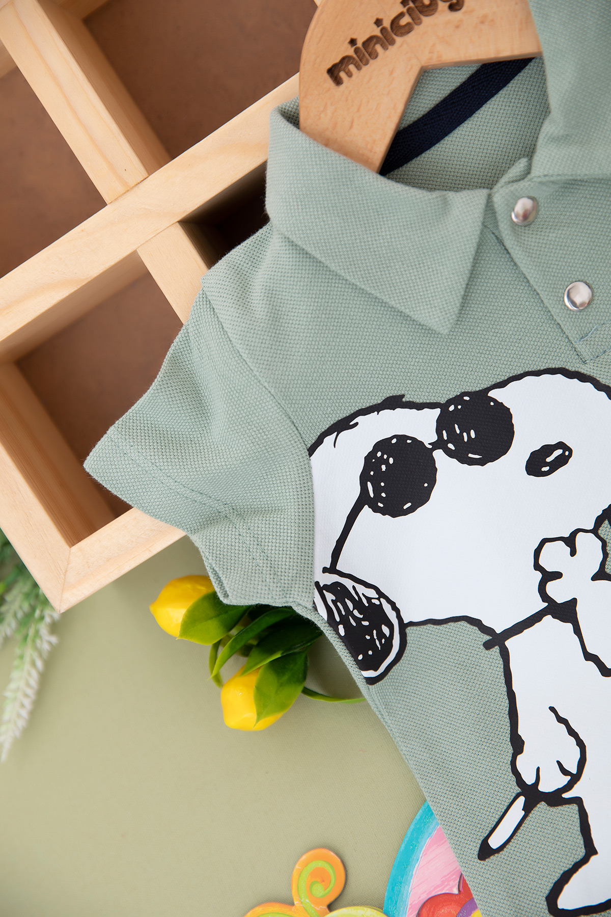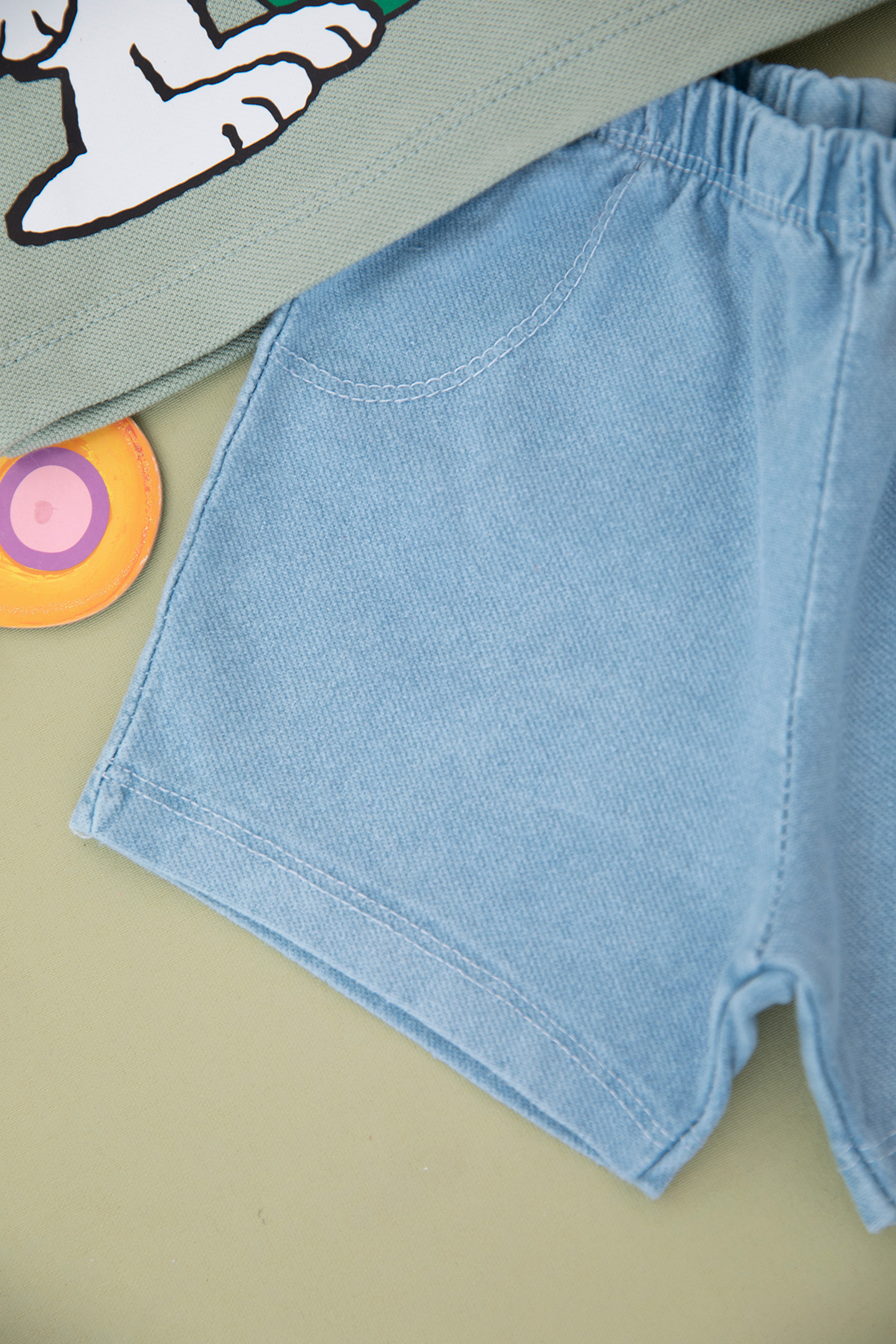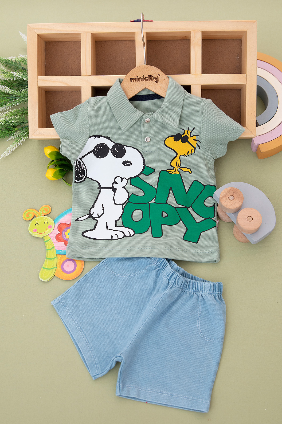 Erkek Bebek Snoopy Baskılı Kot Şortlu Takım - 0212 (6-18 Ay)