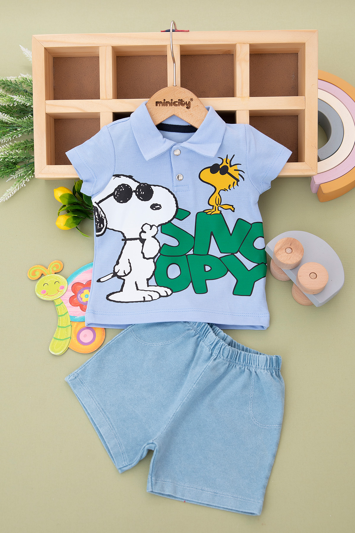 Erkek Bebek Snoopy Baskılı Kot Şortlu Takım - 0212 (6-18 Ay)