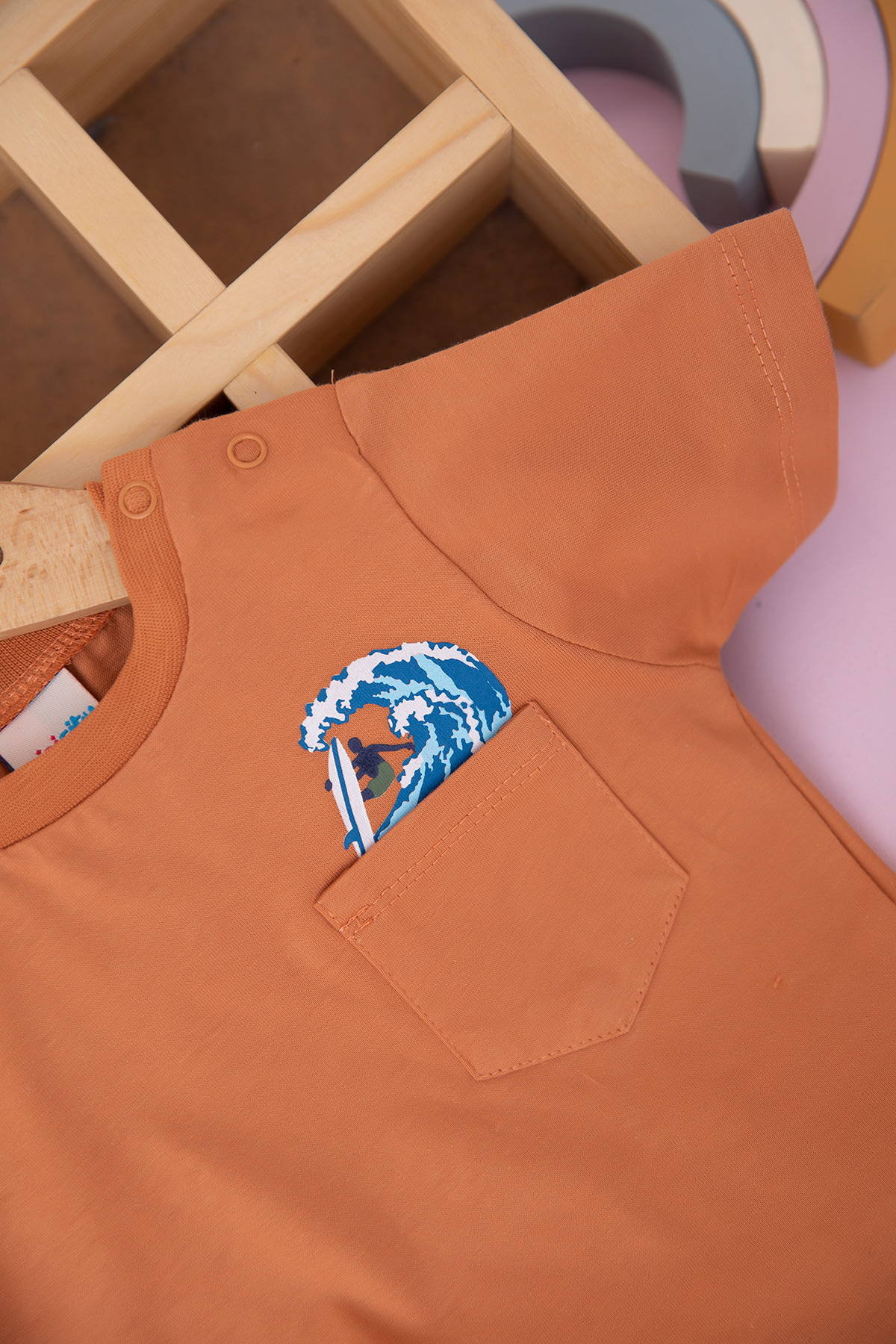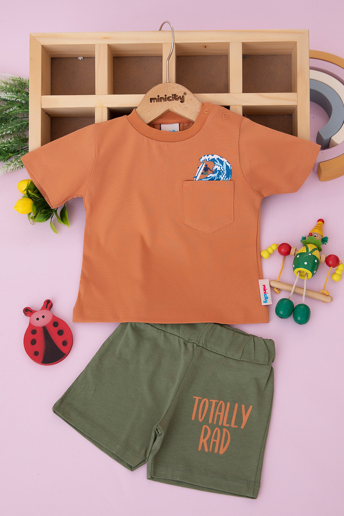 Erkek Bebek Sörfçü Baskılı Şortlu Takım - 24389 (9-24 Ay)