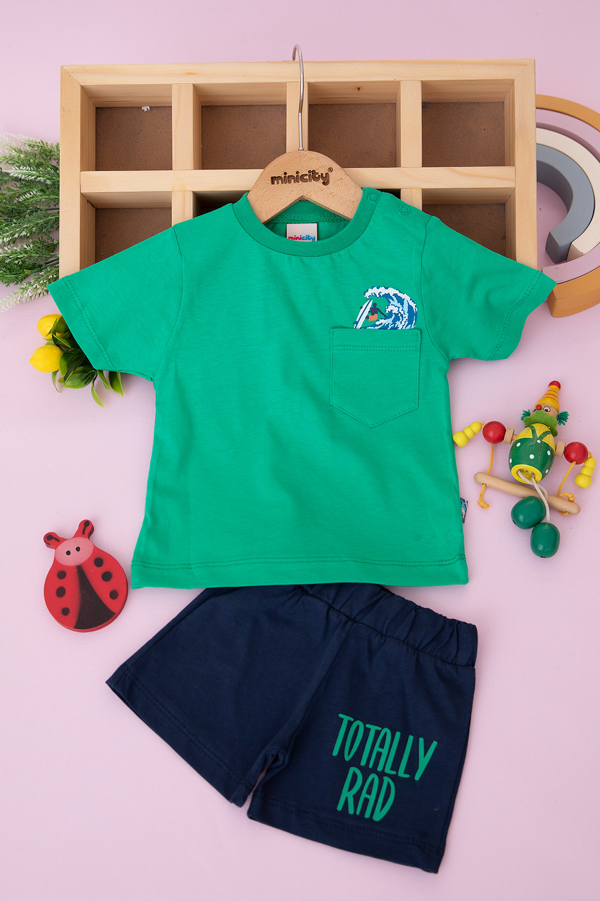 Erkek Bebek Sörfçü Baskılı Şortlu Takım - 24389 (9-24 Ay)