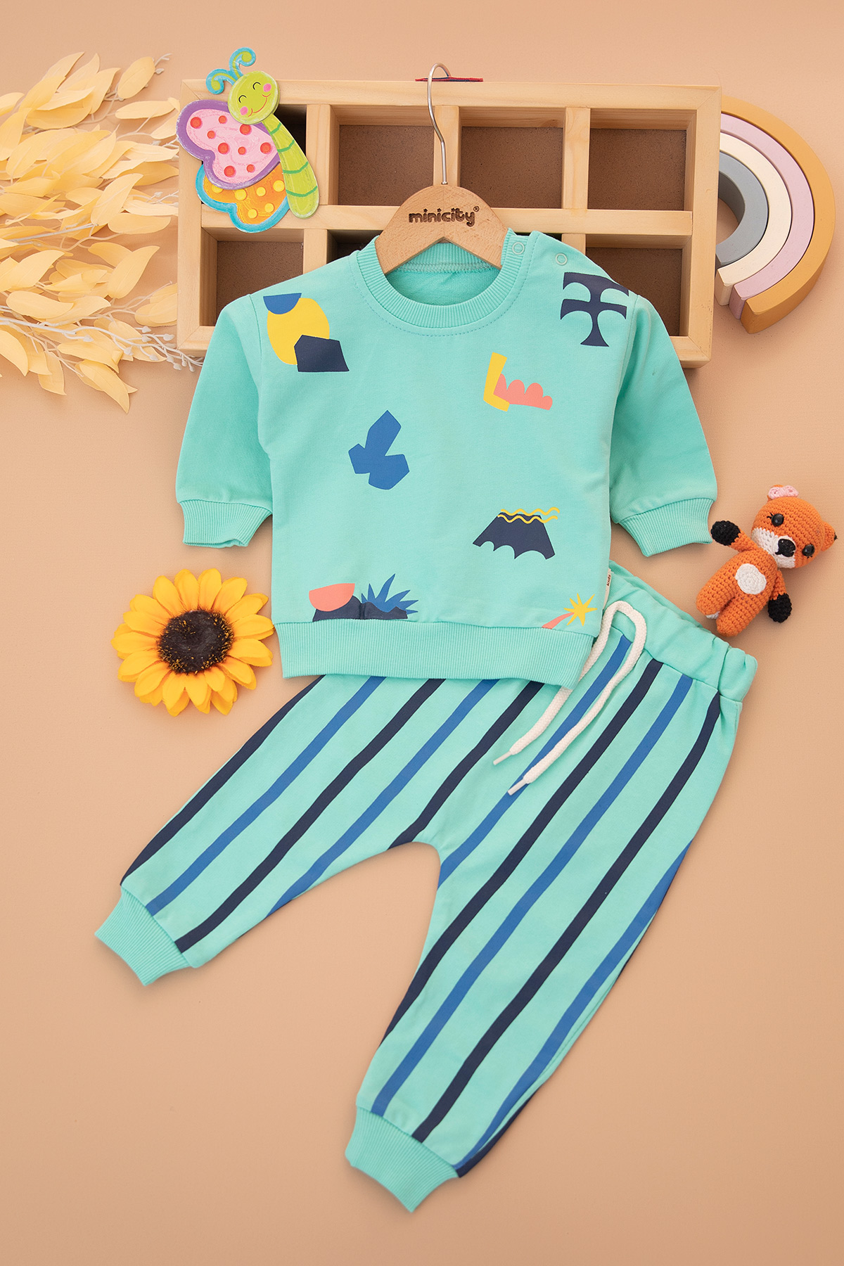 Erkek Bebek Soyut Şekil Baskılı Takım - 2622 (6-24 Ay)