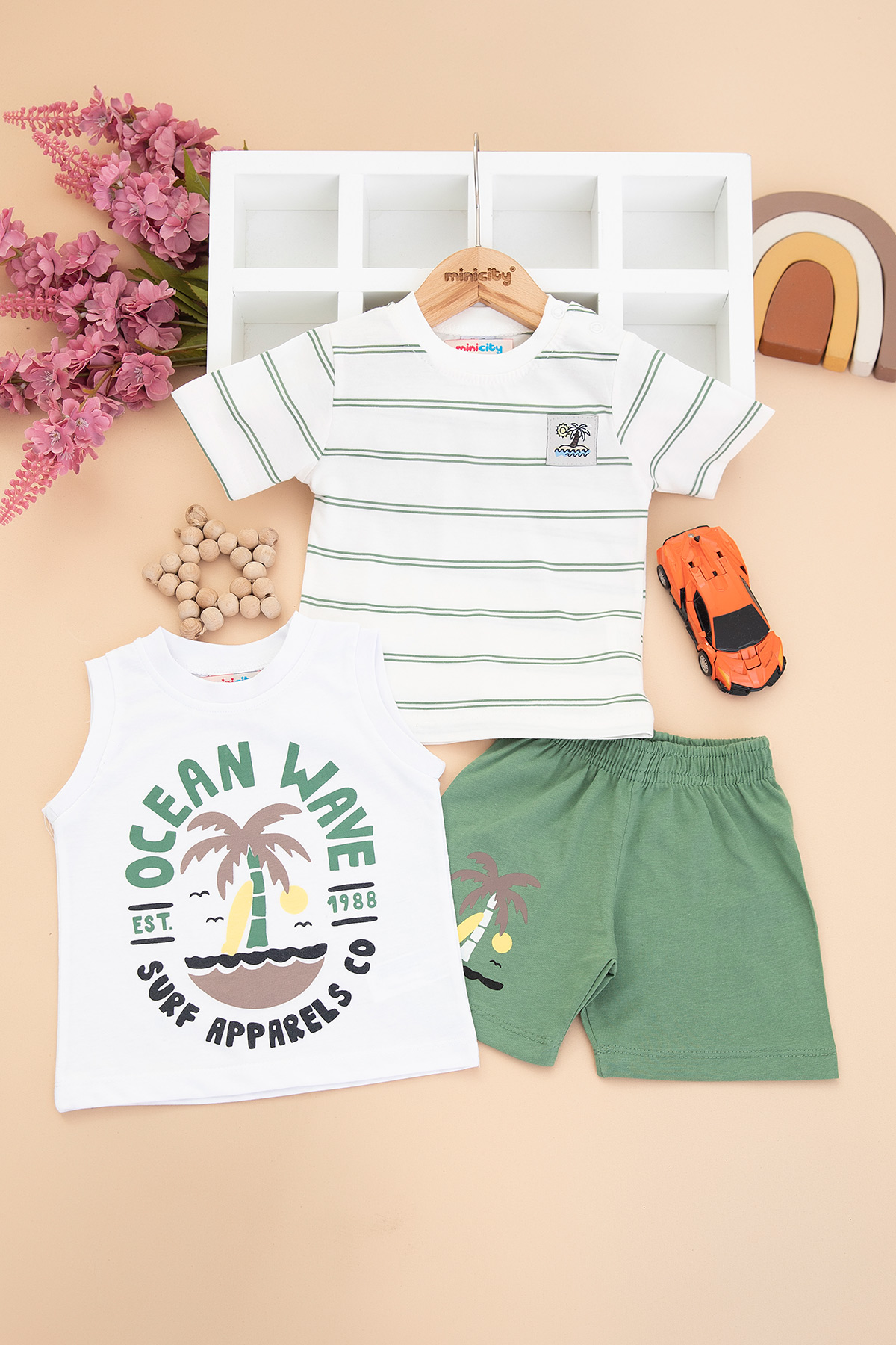 Erkek Bebek Surf Baskılı Şortlu Takım - 26221 (9-24 Ay)