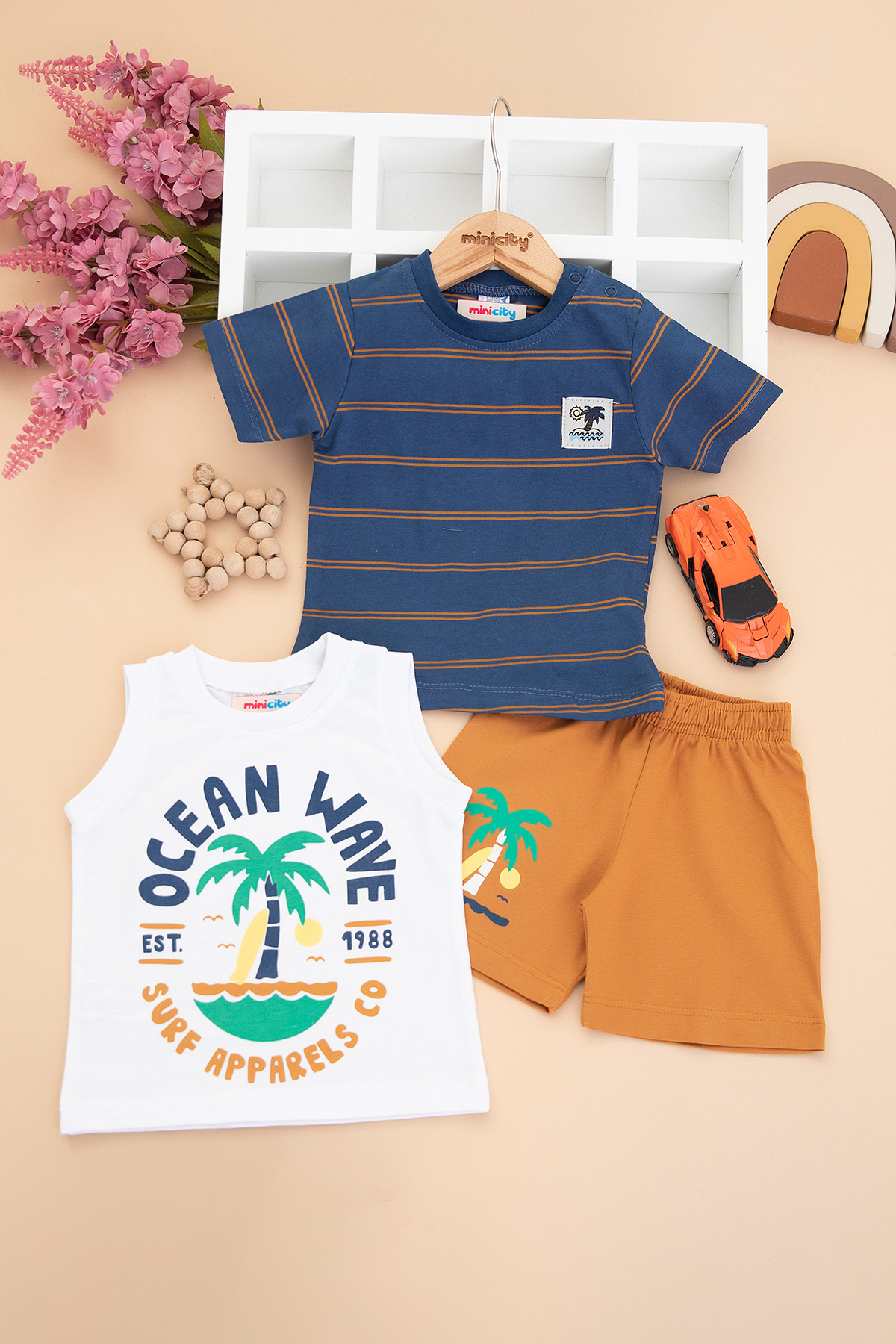 Erkek Bebek Surf Baskılı Şortlu Takım - 26221 (9-24 Ay)