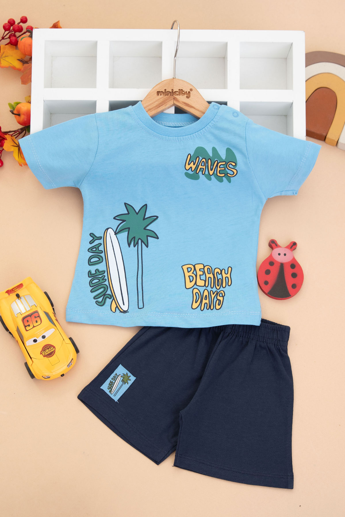 Erkek Bebek Surf Day Baskılı Takım - 26229 (9-24 Ay)