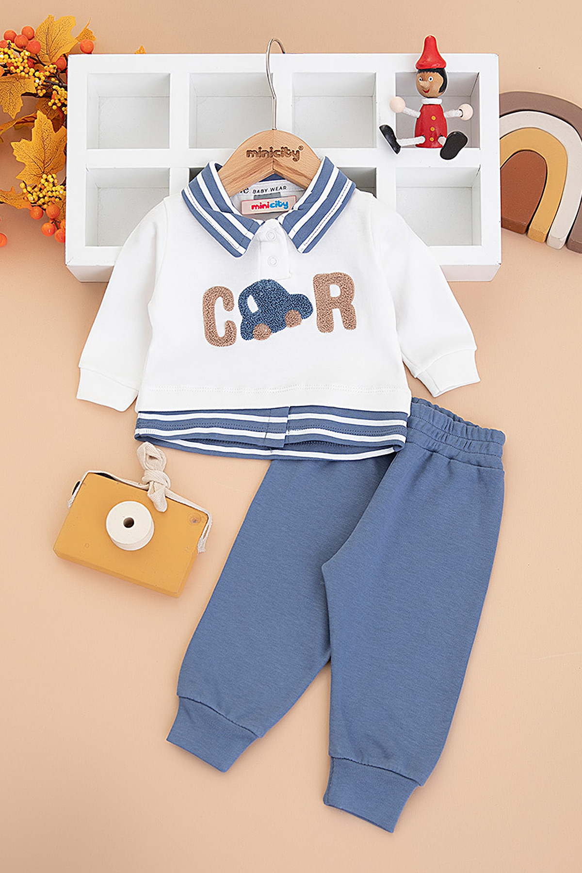 Erkek Bebek Süzene Araba Nakışlı Takım - 14179 (0-12 Ay)