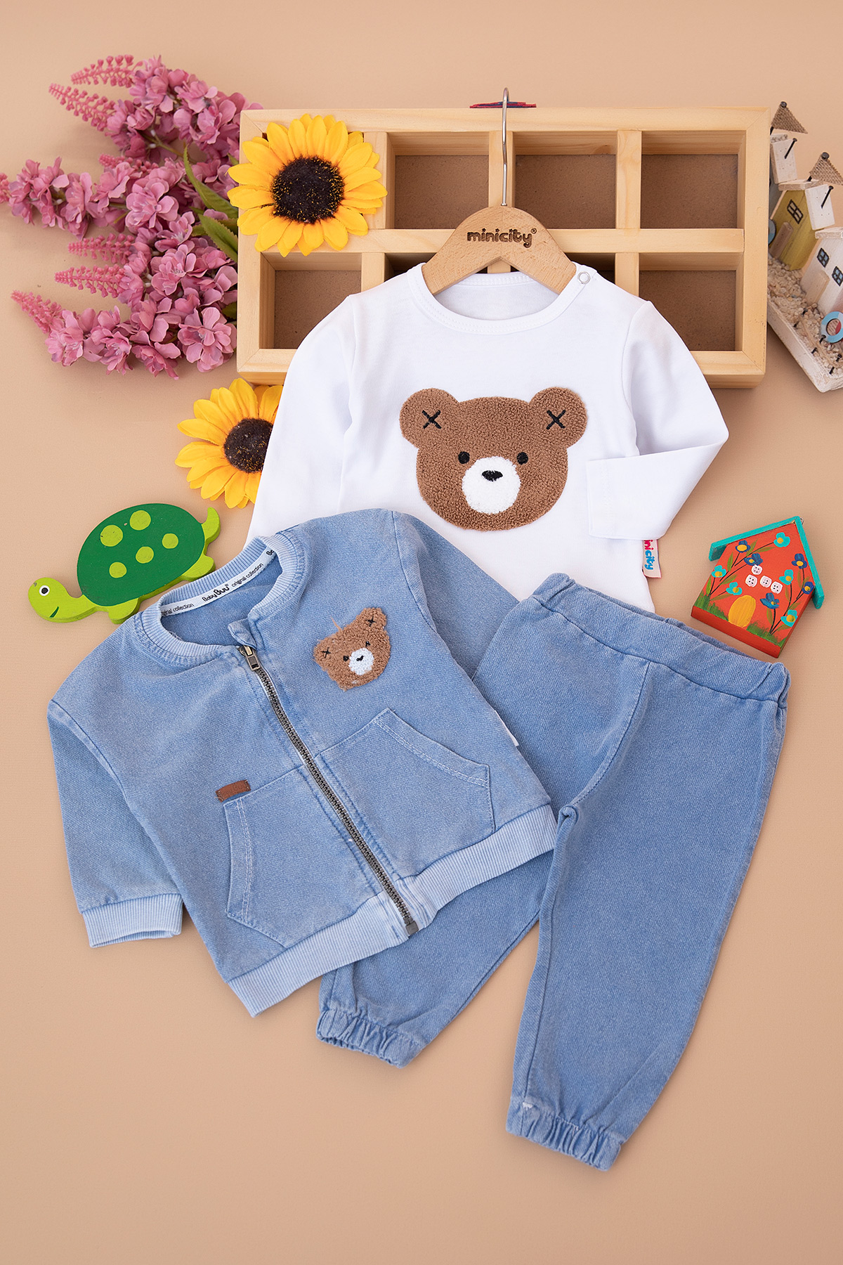 Erkek Bebek Süzene Ayı Kot Üçlü Takım - 0349 (9-24 Ay)