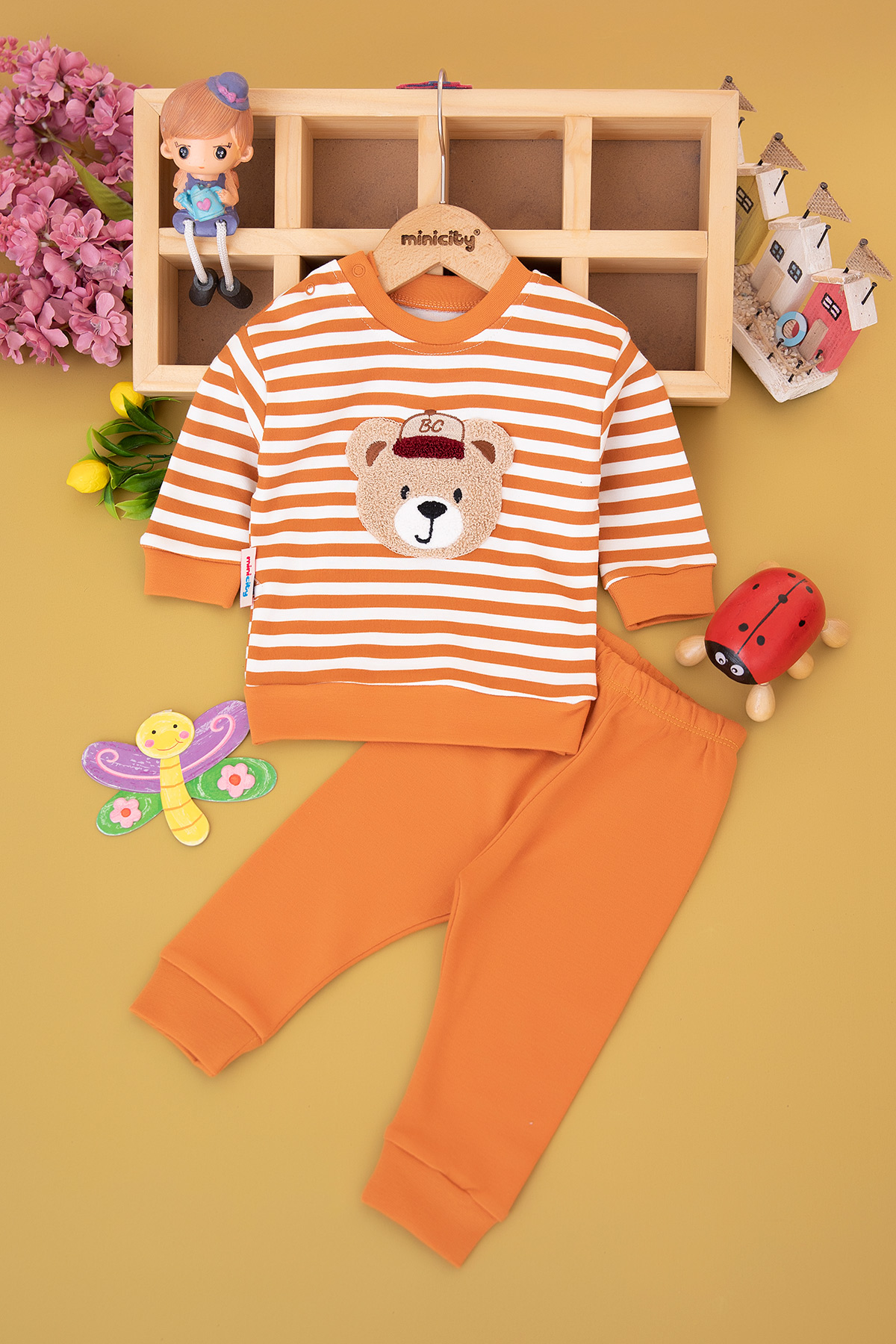Erkek Bebek Süzene Ayıcık Nakışlı Takım - 2124 (3-12 Ay)