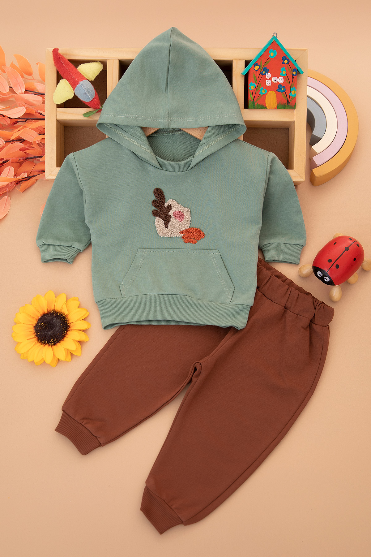 Erkek Bebek Süzene Kaktüs Nakışlı Takım - 2840 (6-24 Ay)