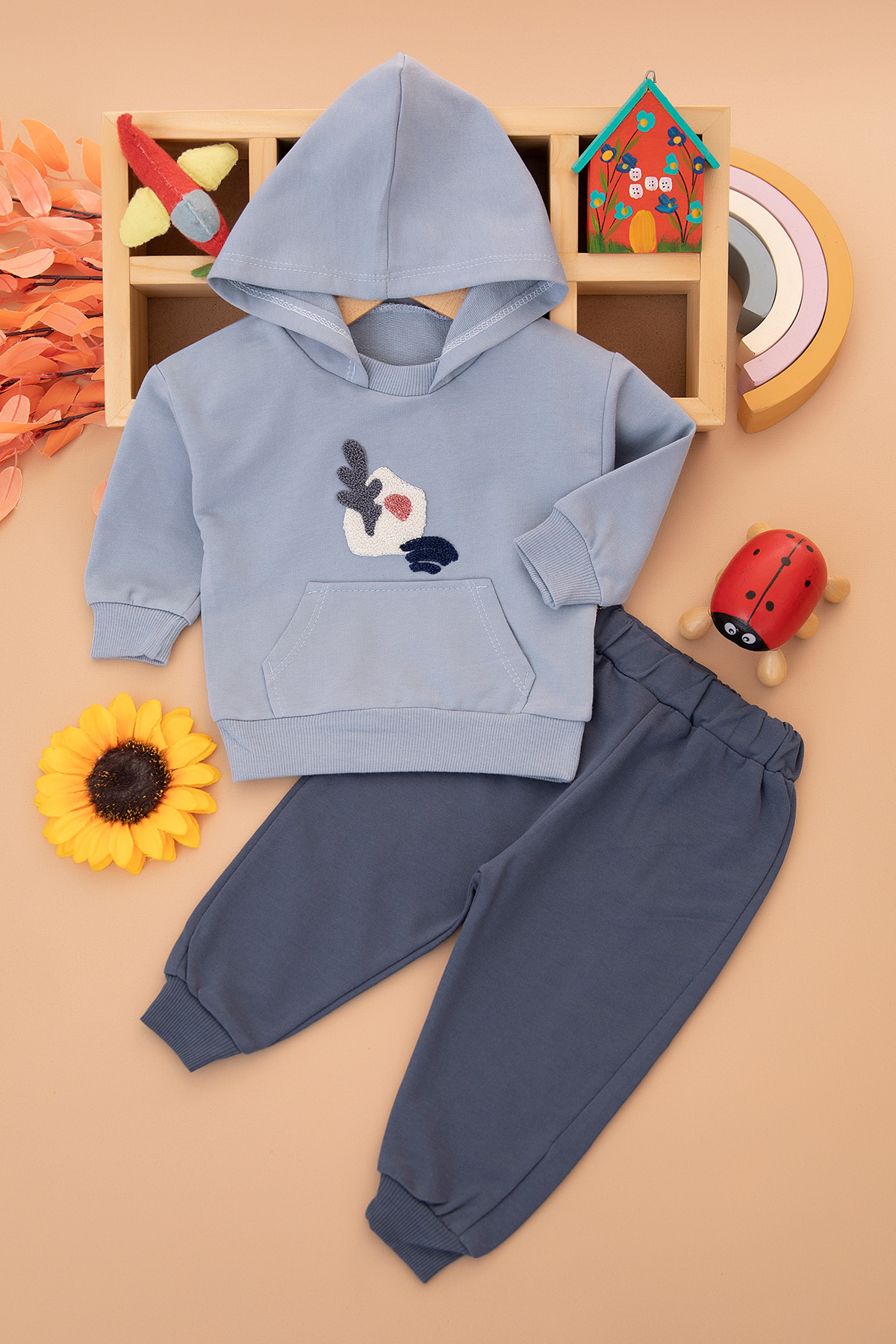 Erkek Bebek Süzene Kaktüs Nakışlı Takım - 2840 (6-24 Ay)