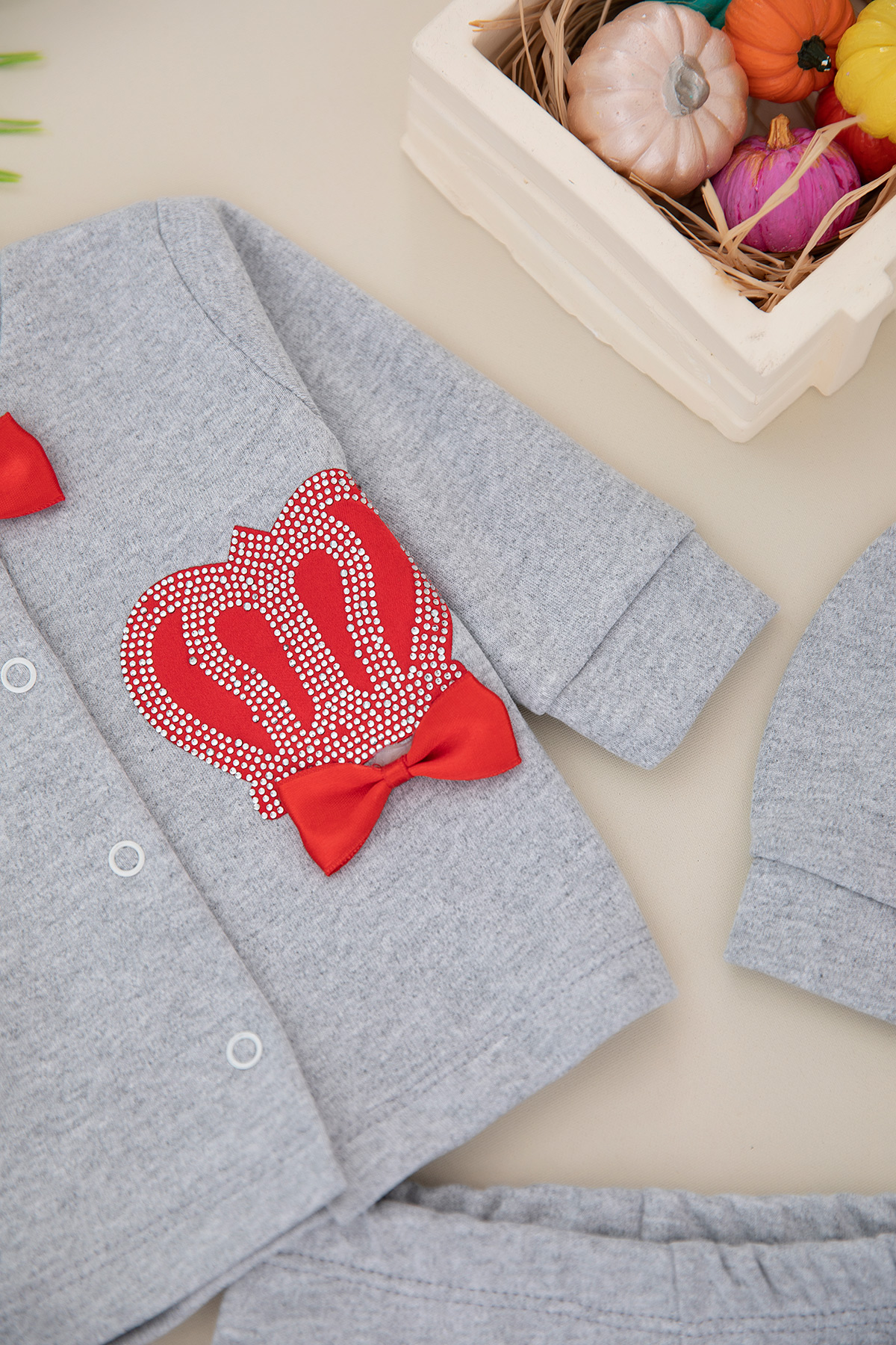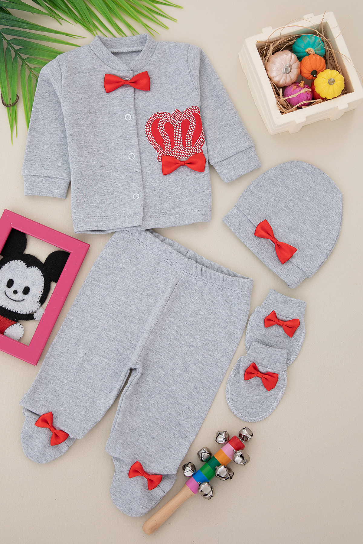 Erkek Bebek Taç Baskılı 4`Lü Zıbın Seti - 4628 (0-9 Ay)