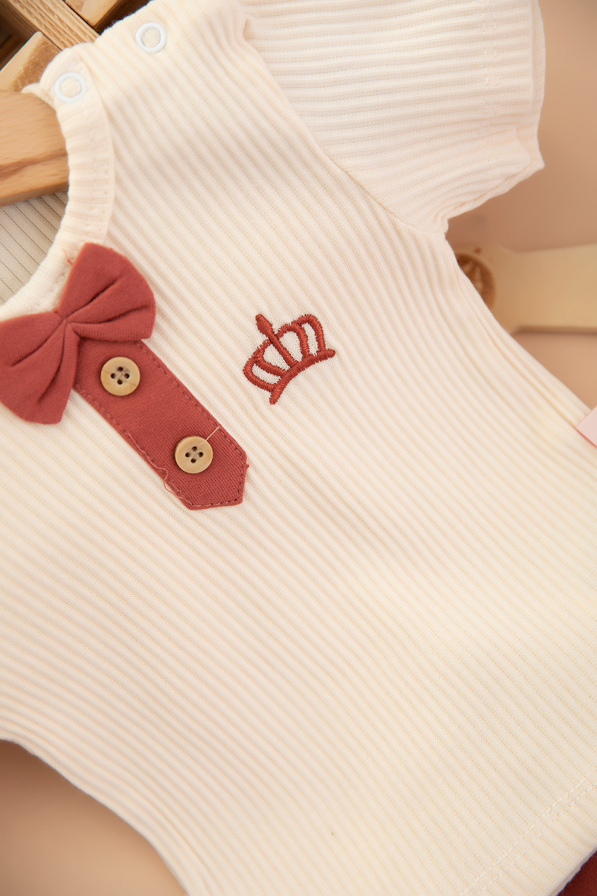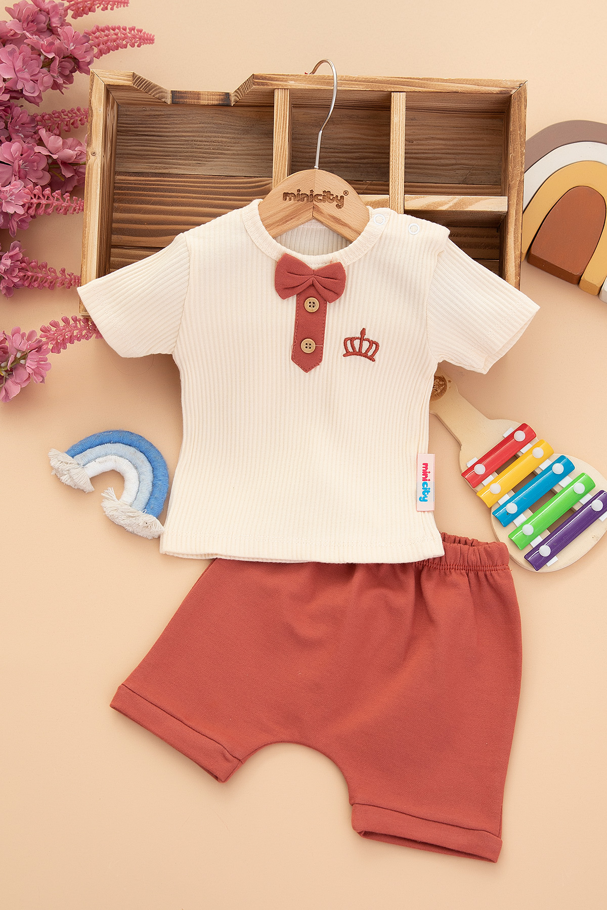 Erkek Bebek Taç Nakışlı Şortlu Takım - 2052 (6-18 Ay)