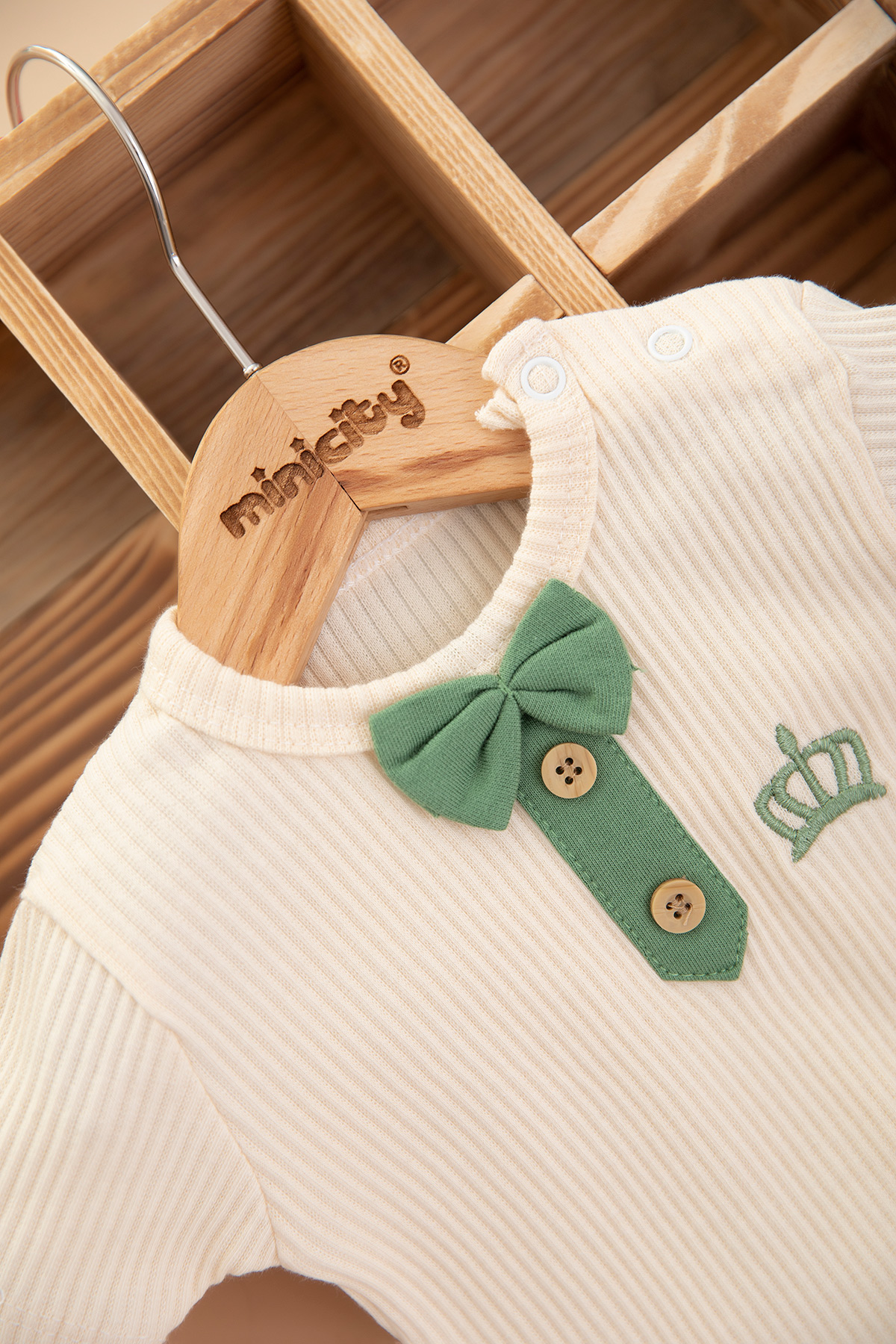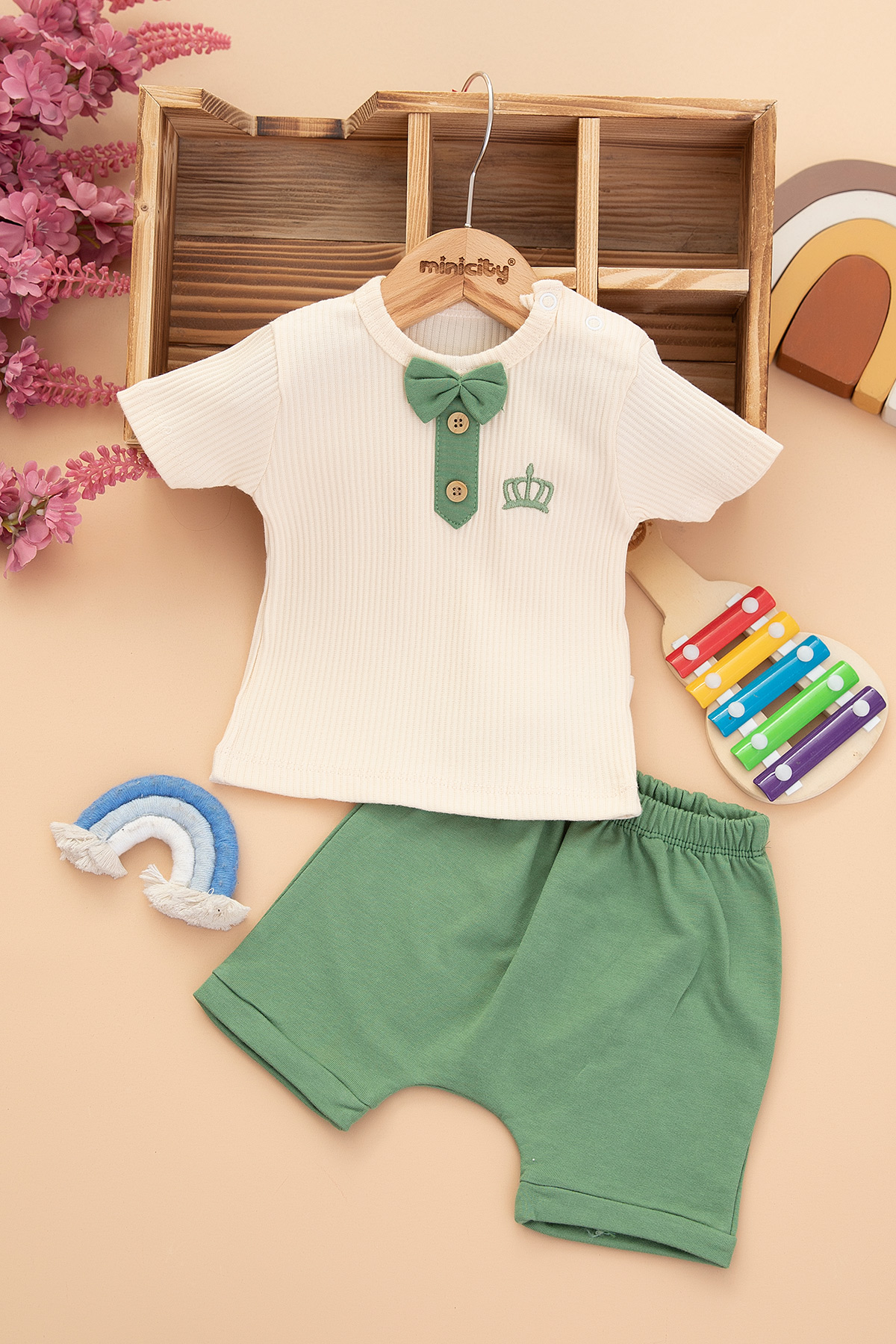 Erkek Bebek Taç Nakışlı Şortlu Takım - 2052 (6-18 Ay)