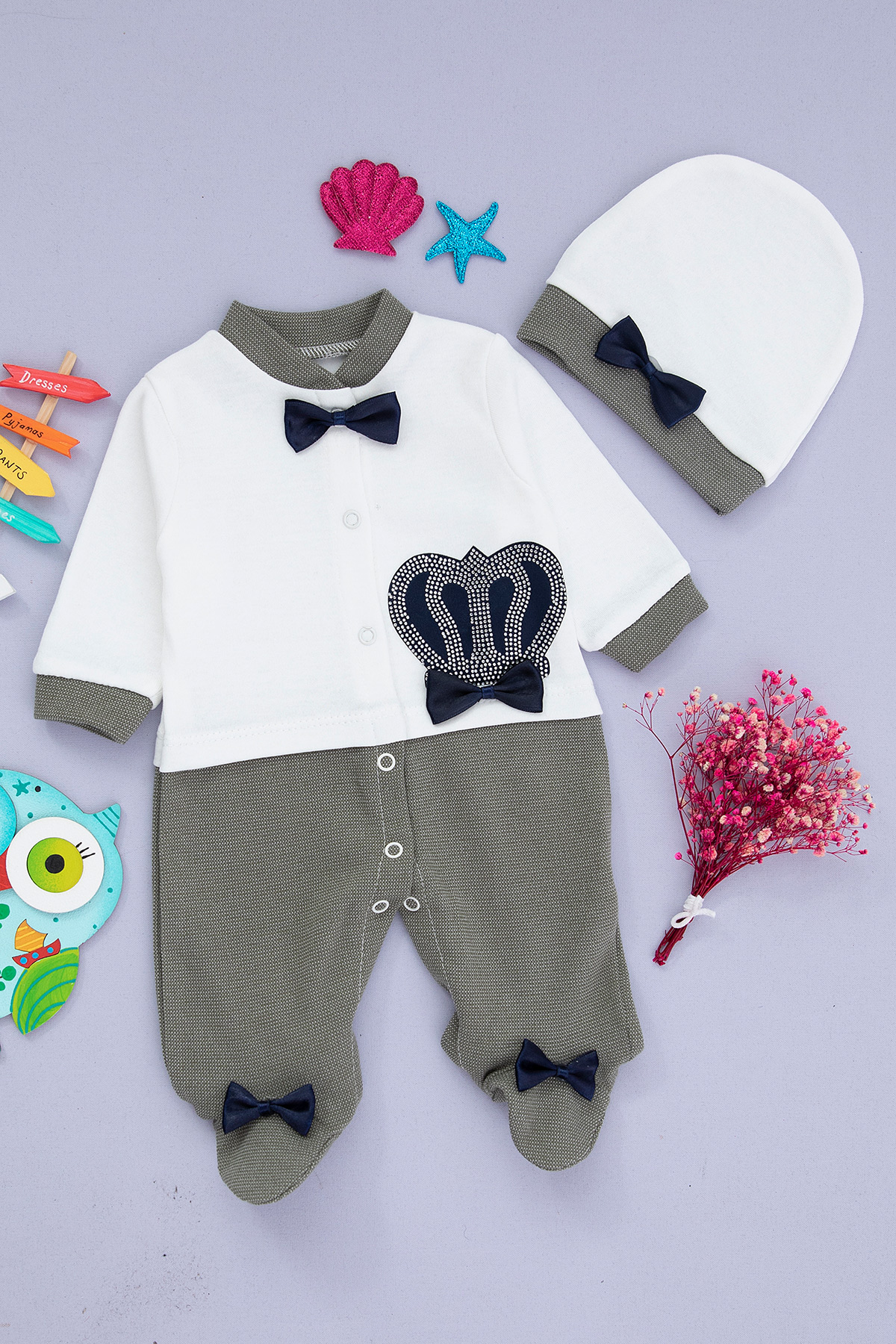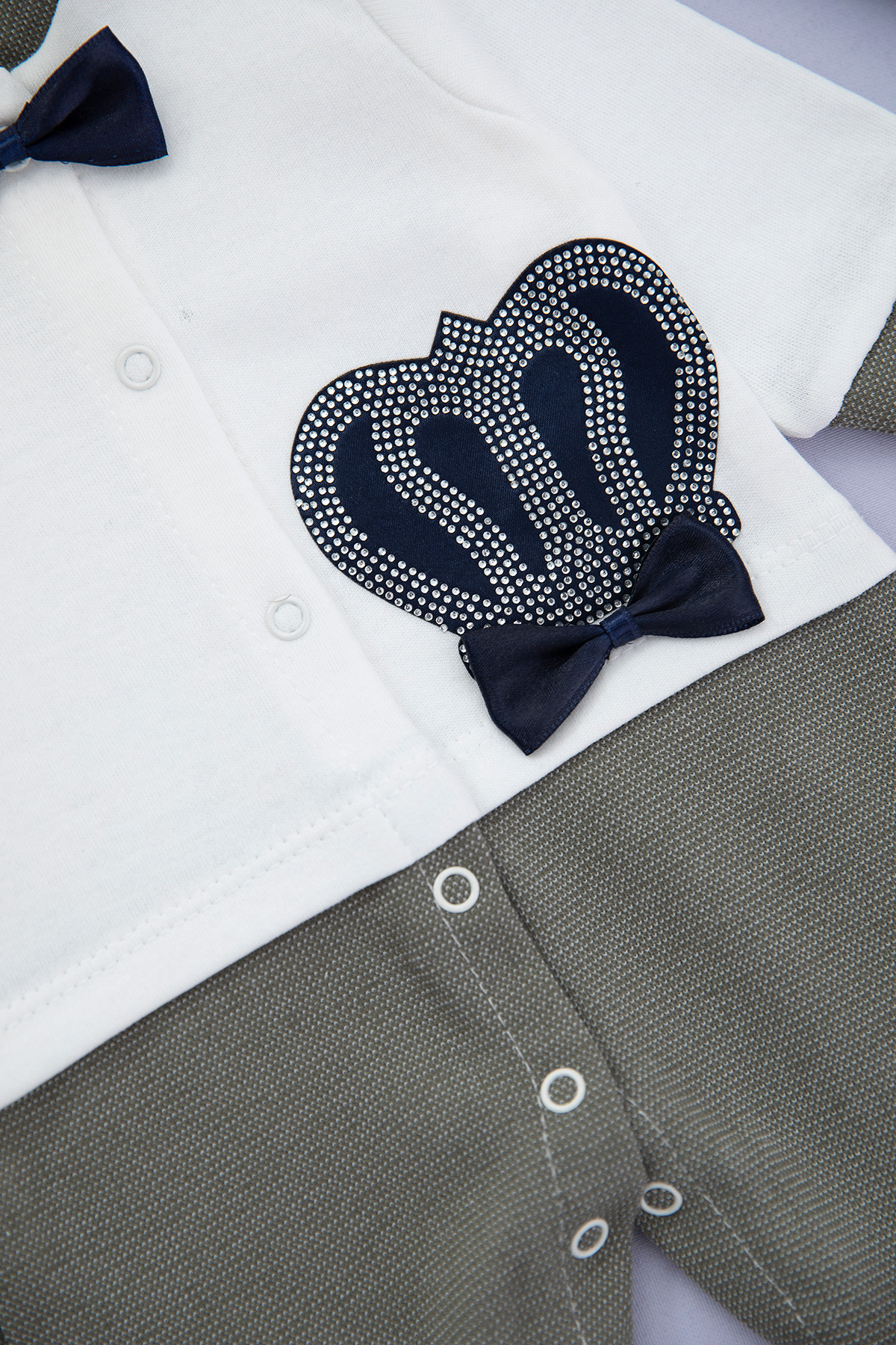Erkek Bebek Taçlı Papyonlu Tulum - 5173 (0-9 Ay)