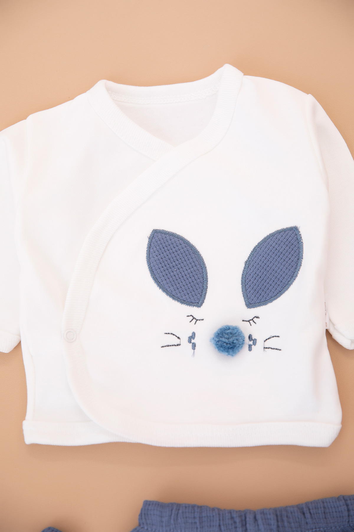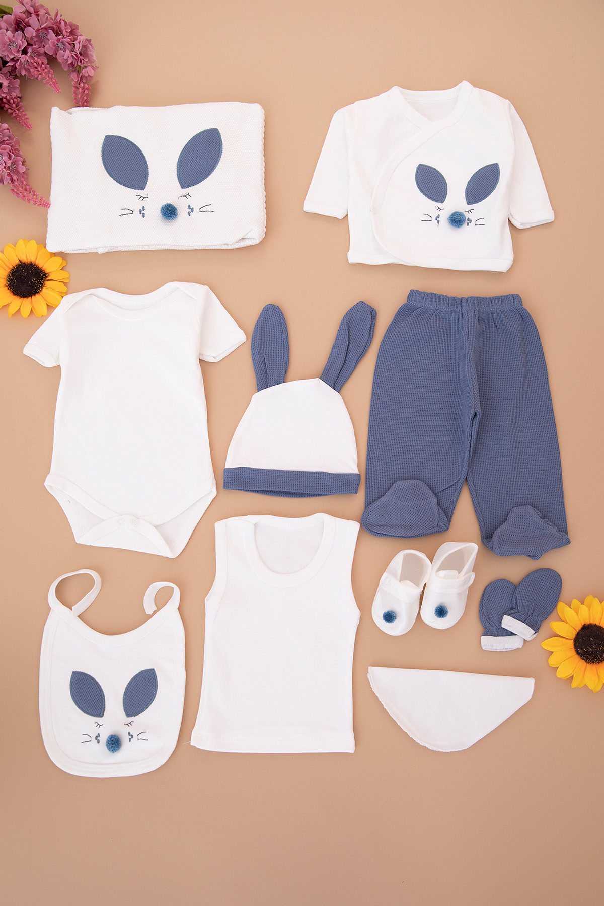 Erkek Bebek Tavşan Nakışlı 10 Lu Zıbın Seti - 20226