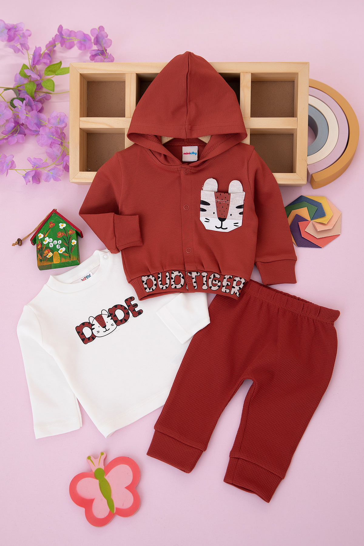 Erkek Bebek Tiger Baskılı Üçlü Takım - NB045 (3-12 Ay)