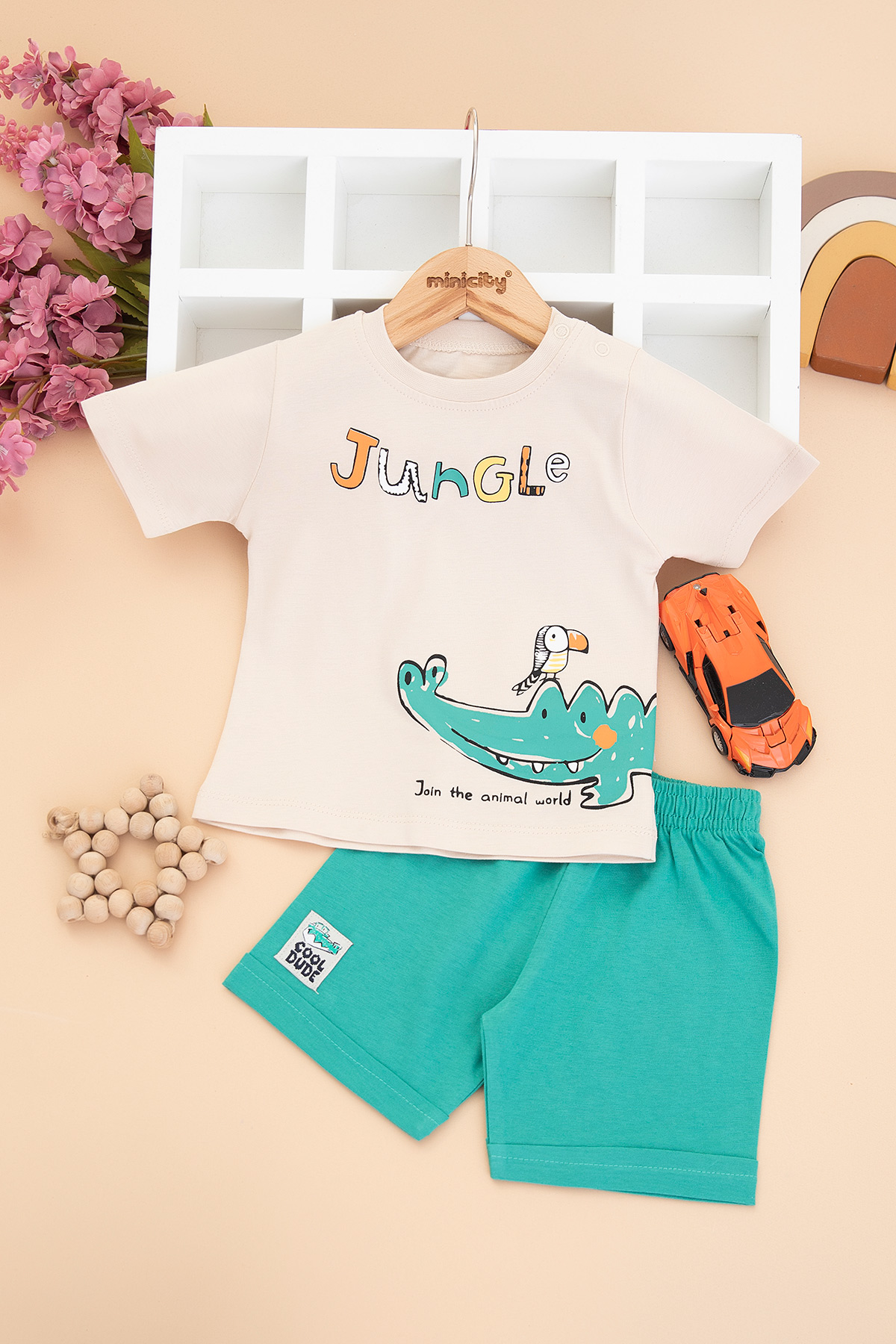 Erkek Bebek Timsah Baskılı Şortlu Takım - 26379 (9-24 Ay)