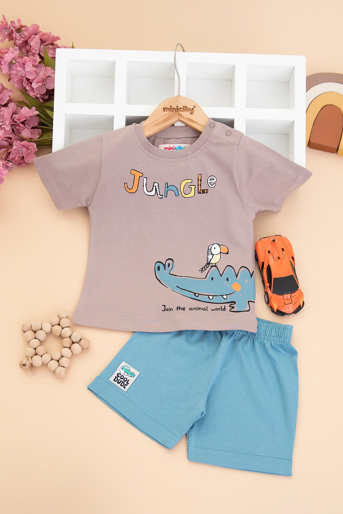 Erkek Bebek Timsah Baskılı Şortlu Takım - 26379 (9-24 Ay)