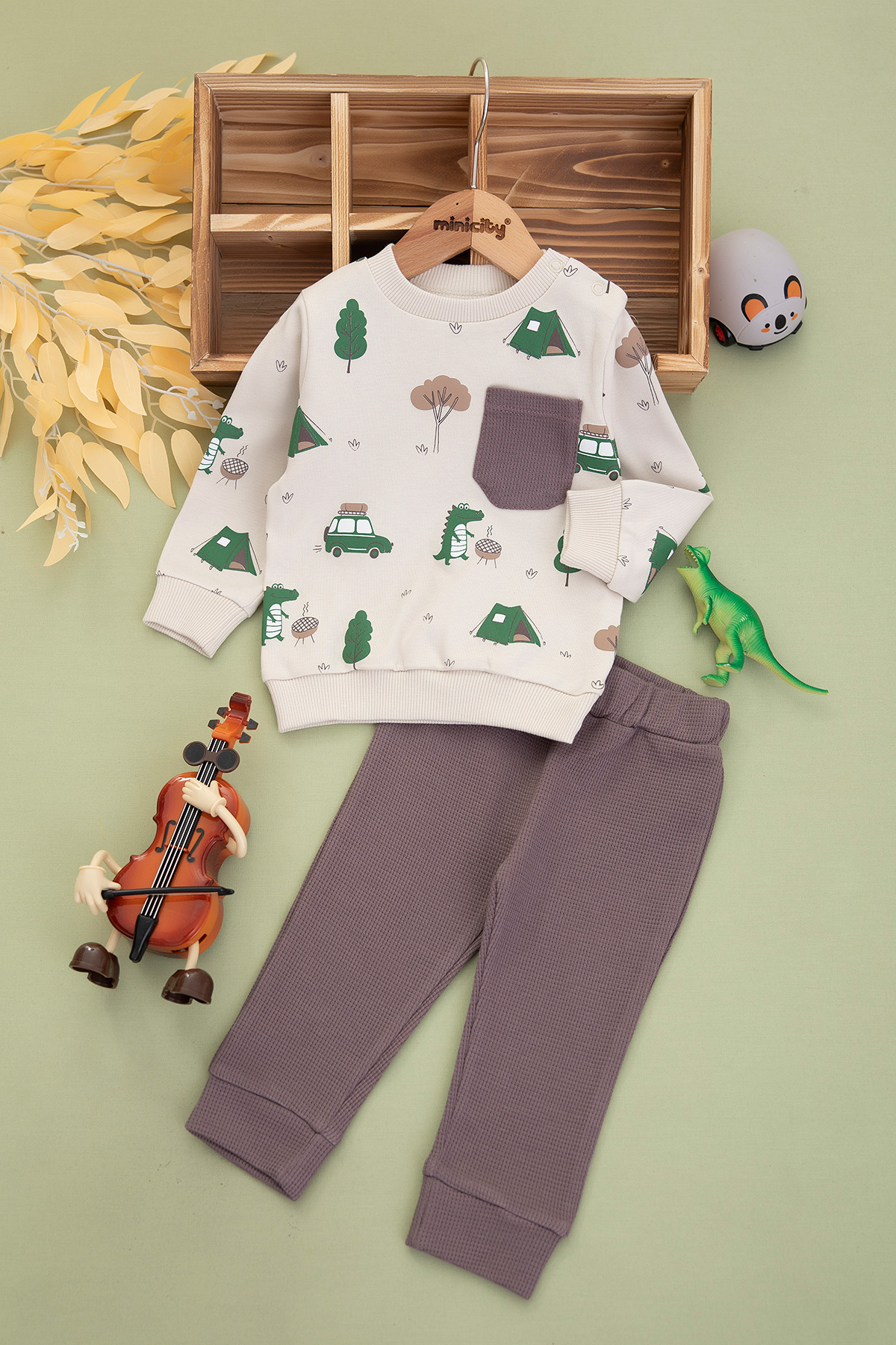Erkek Bebek Timsah Camp Baskılı Takım - 24551 (9-24 Ay)