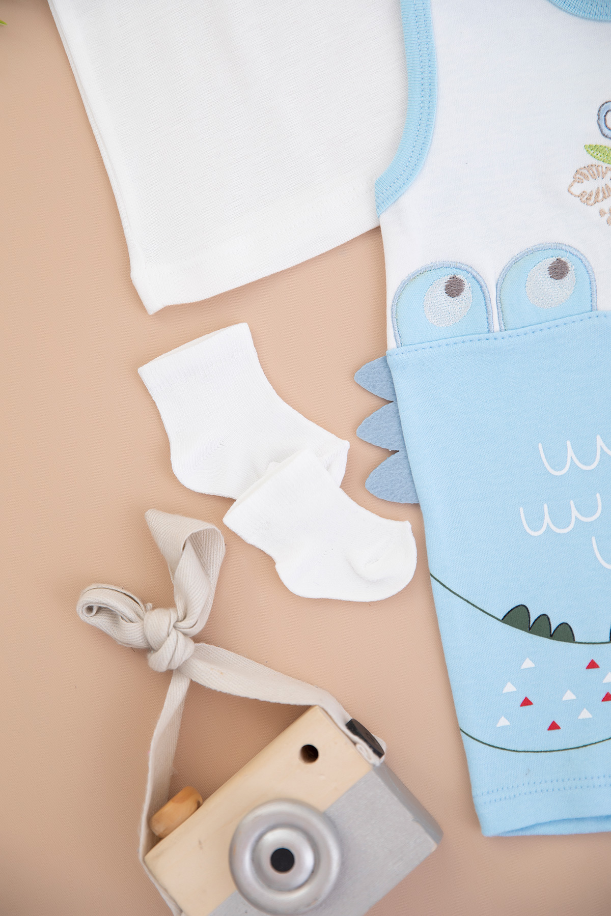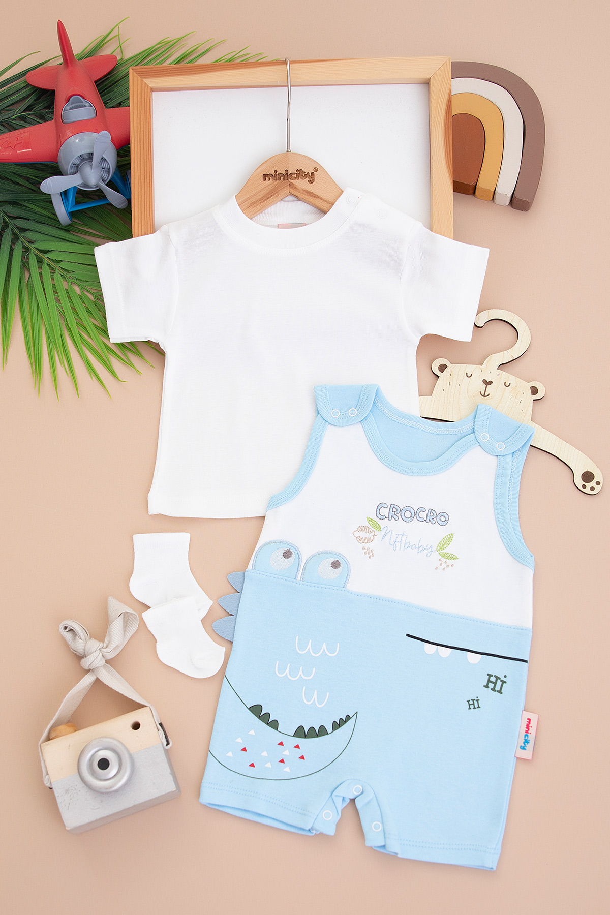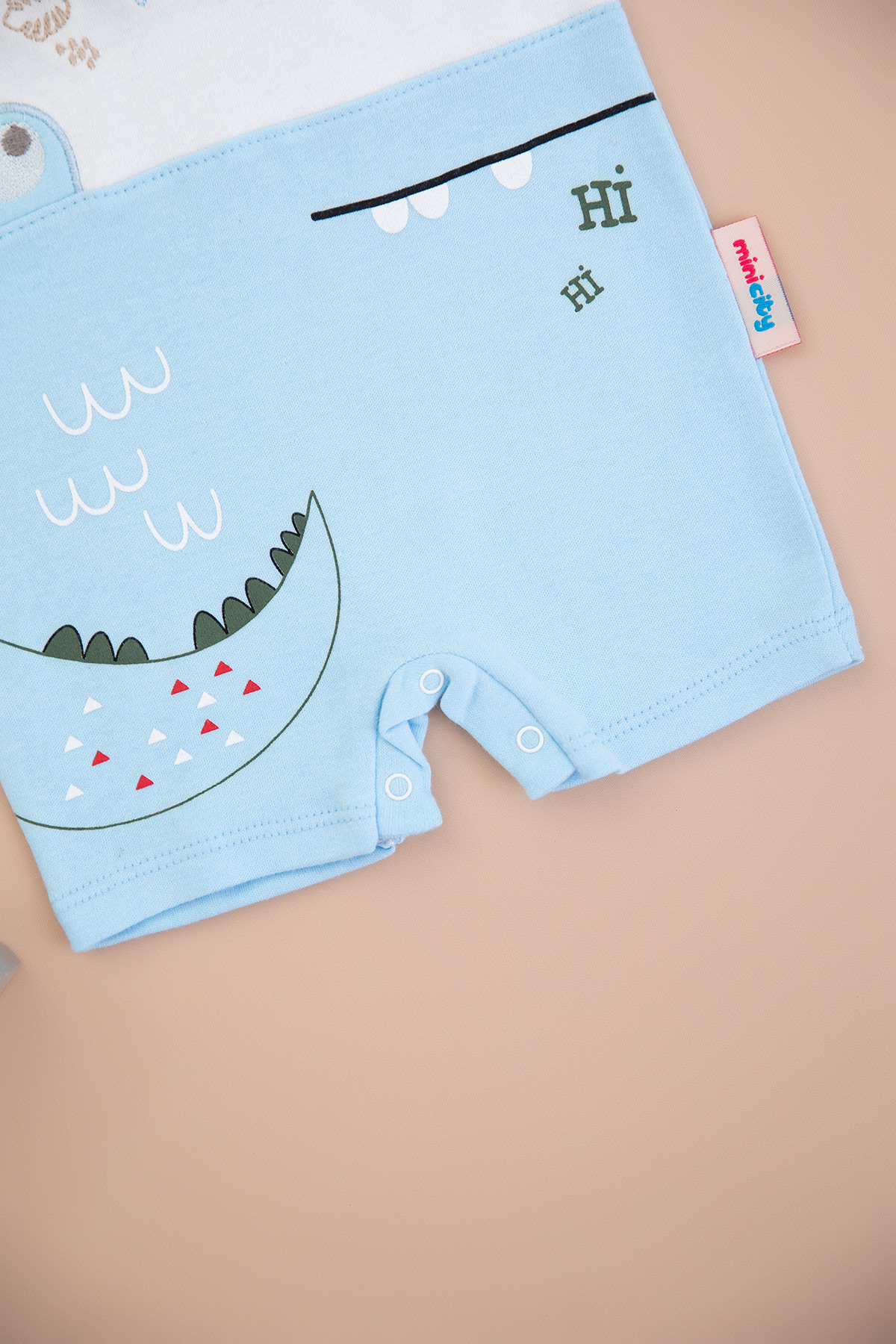 Erkek Bebek Timsah Nakışlı Şort Tulum - 1406 (6-9 Ay)
