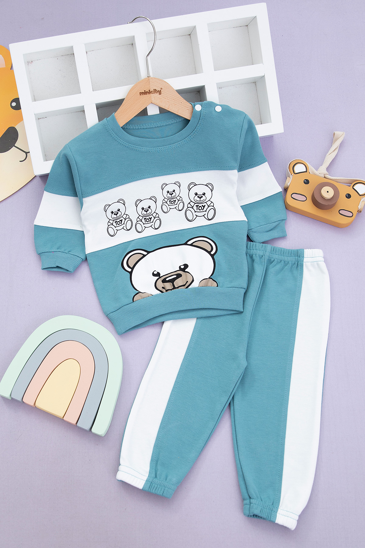 Erkek Bebek Toy Ayıcık Baskılı Takım - 1090 (9-24 Ay)