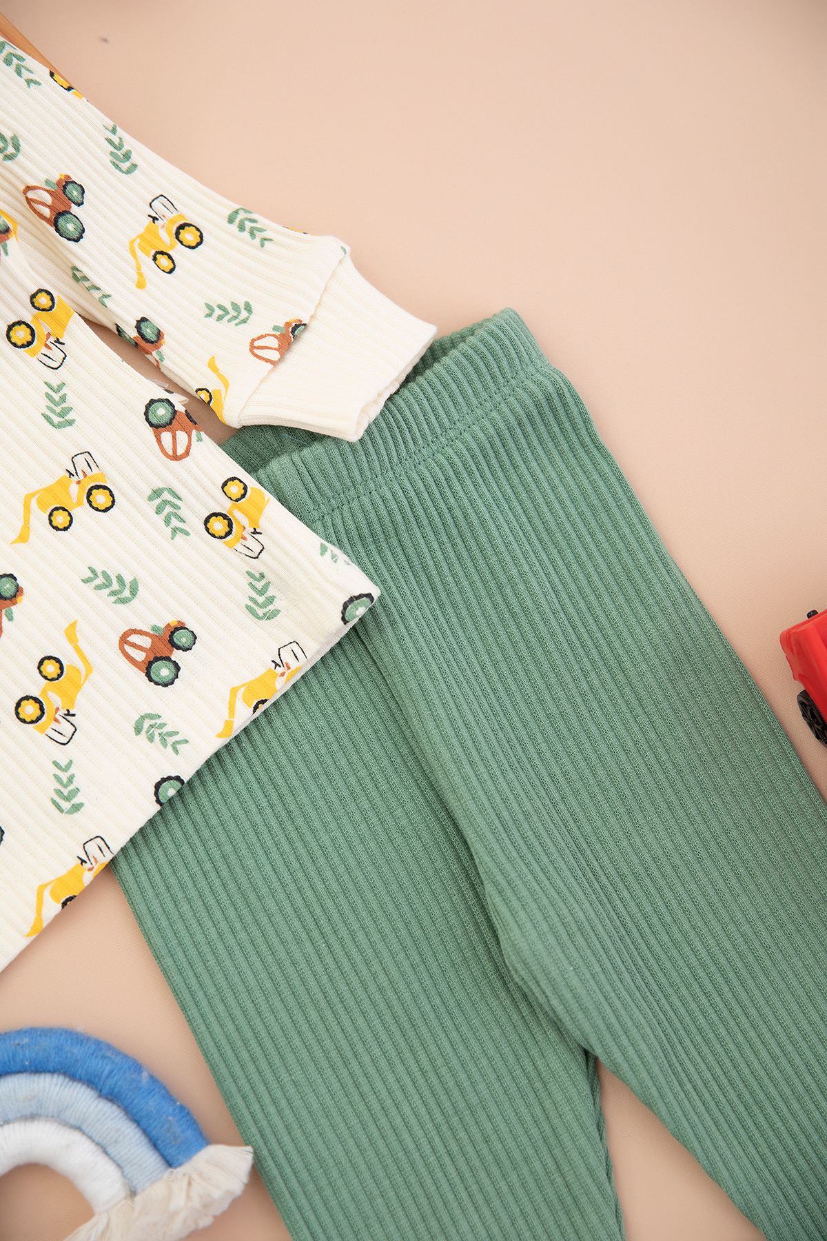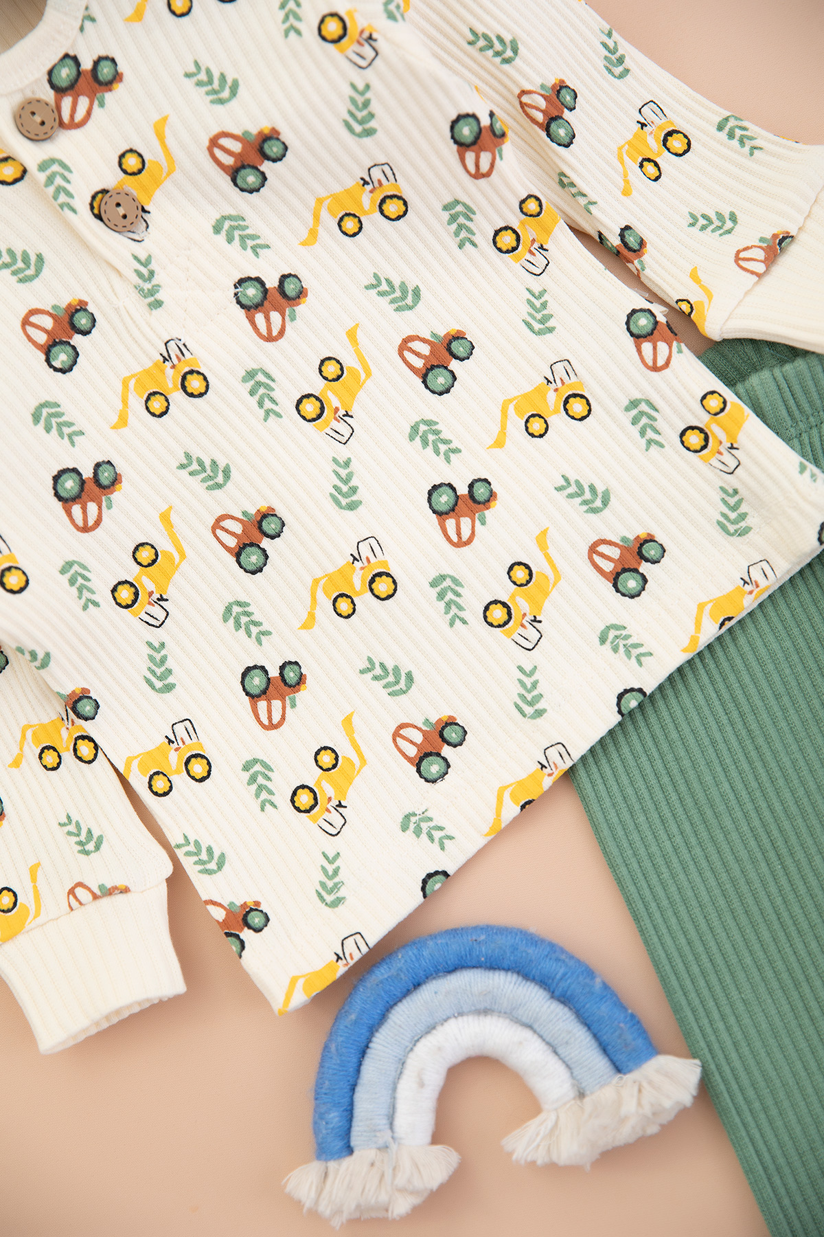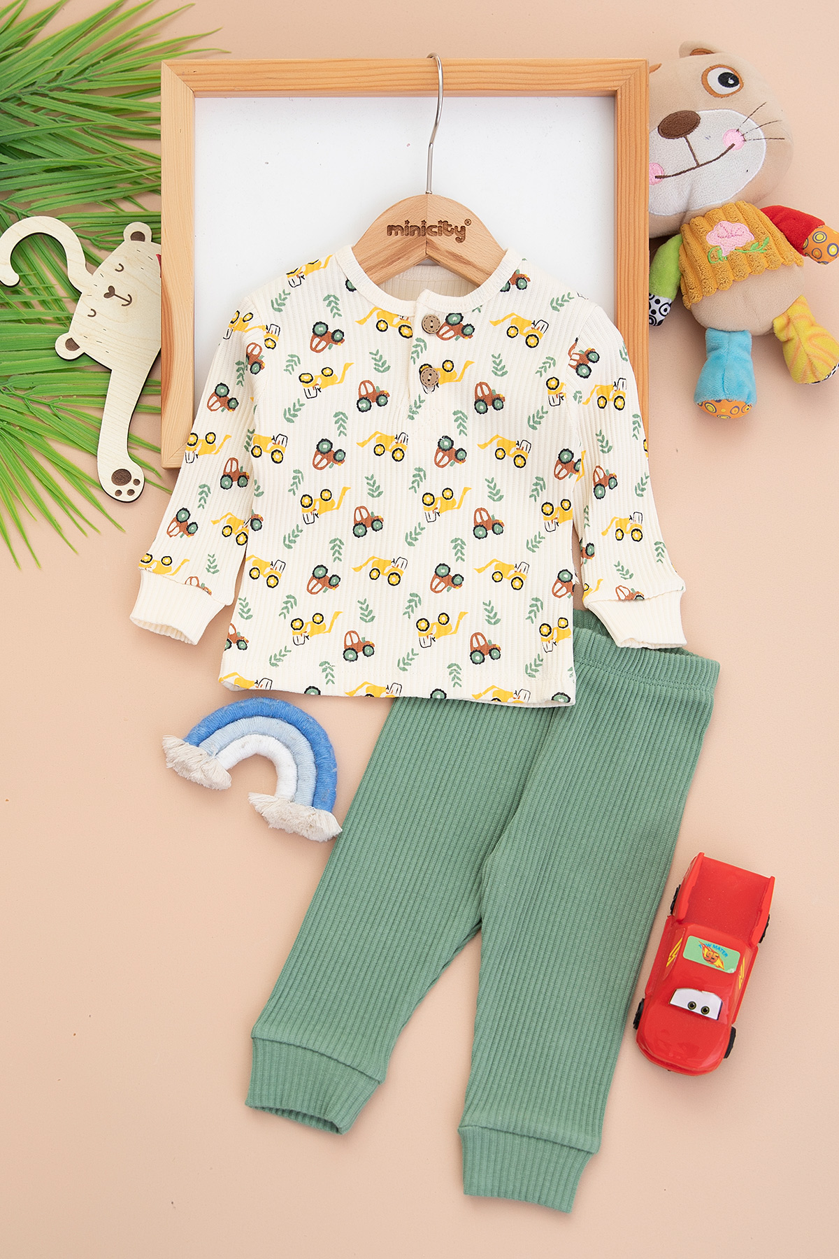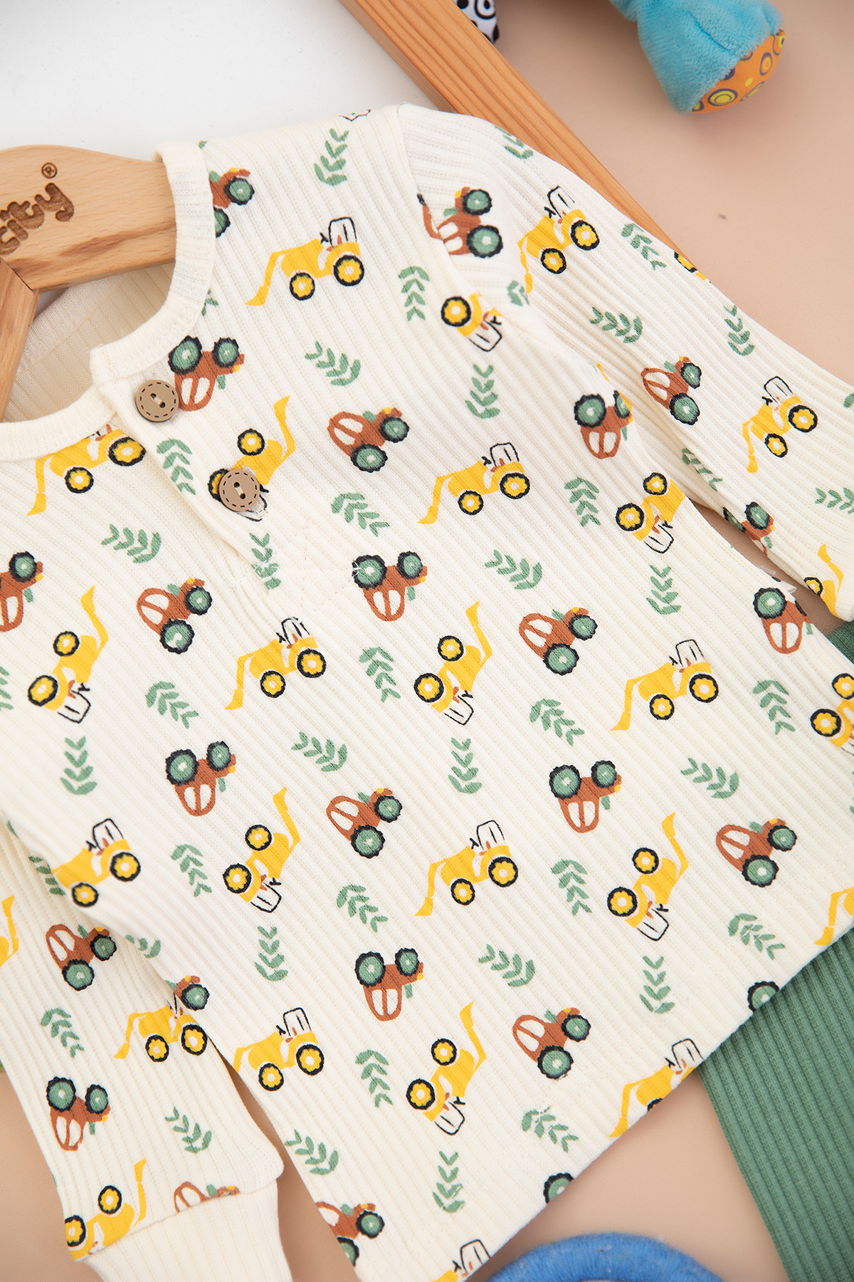 Erkek Bebek Traktör Araba Baskılı Takım - 1189 (3-12 Ay)