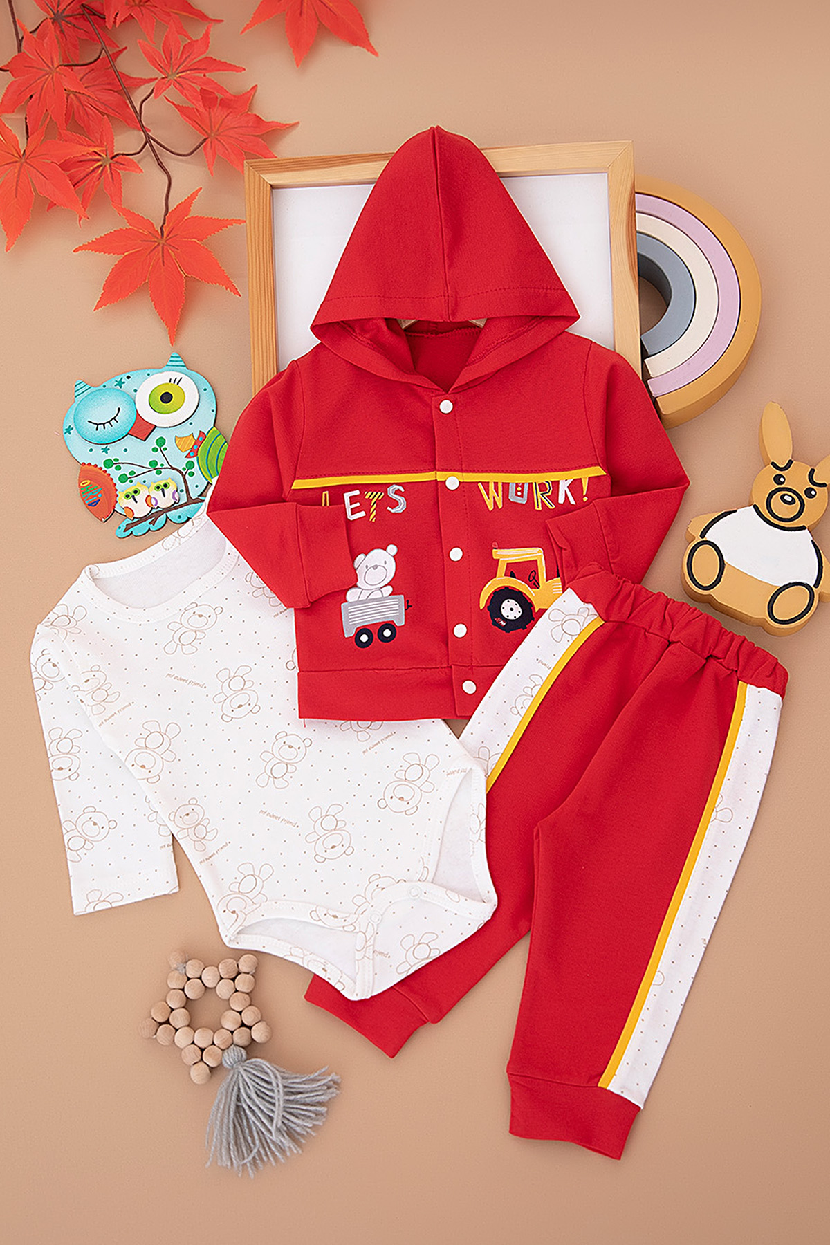 Erkek Bebek Traktör Baskılı Üçlü Takım - 3320 (6-18 Ay)
