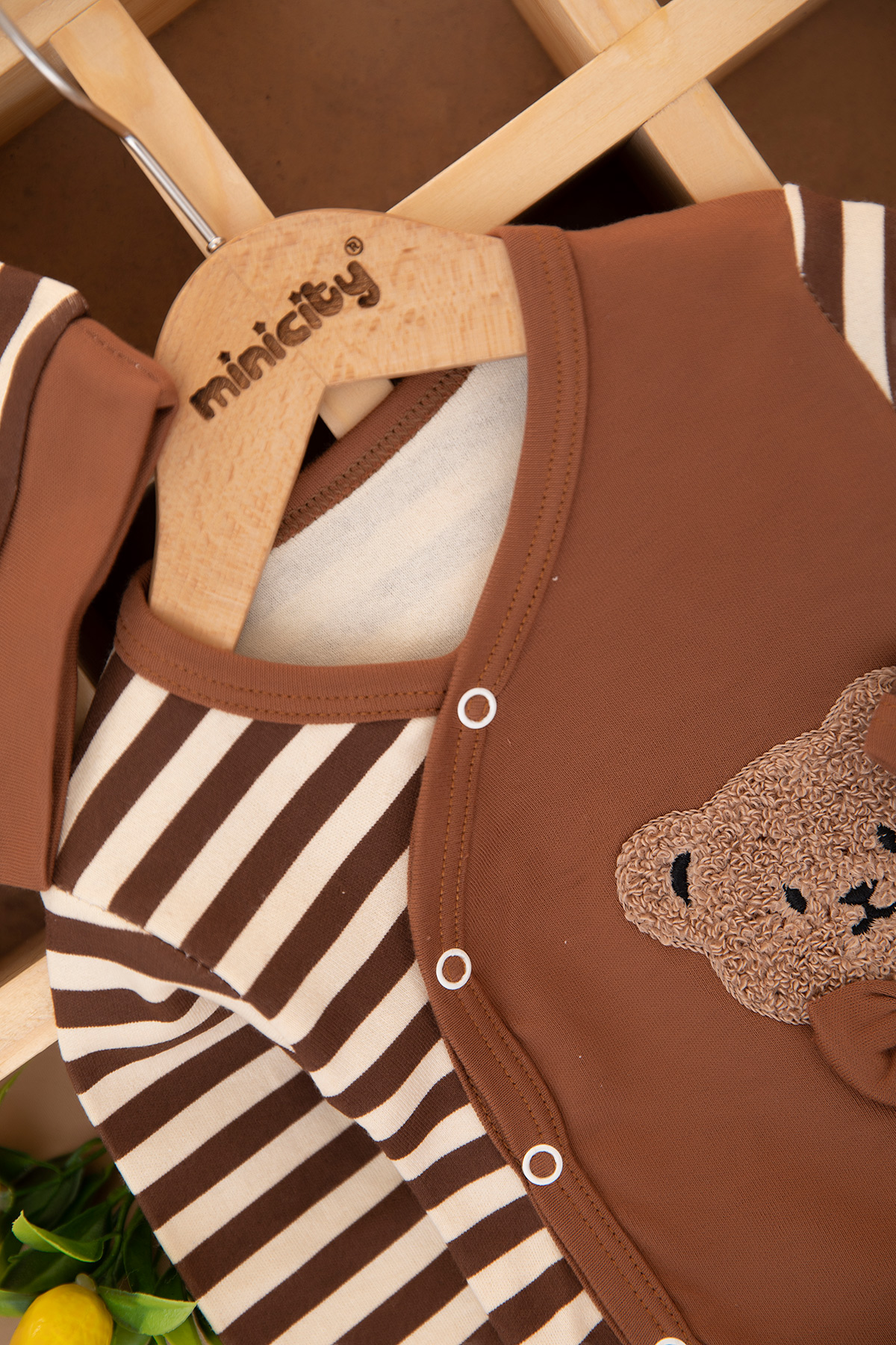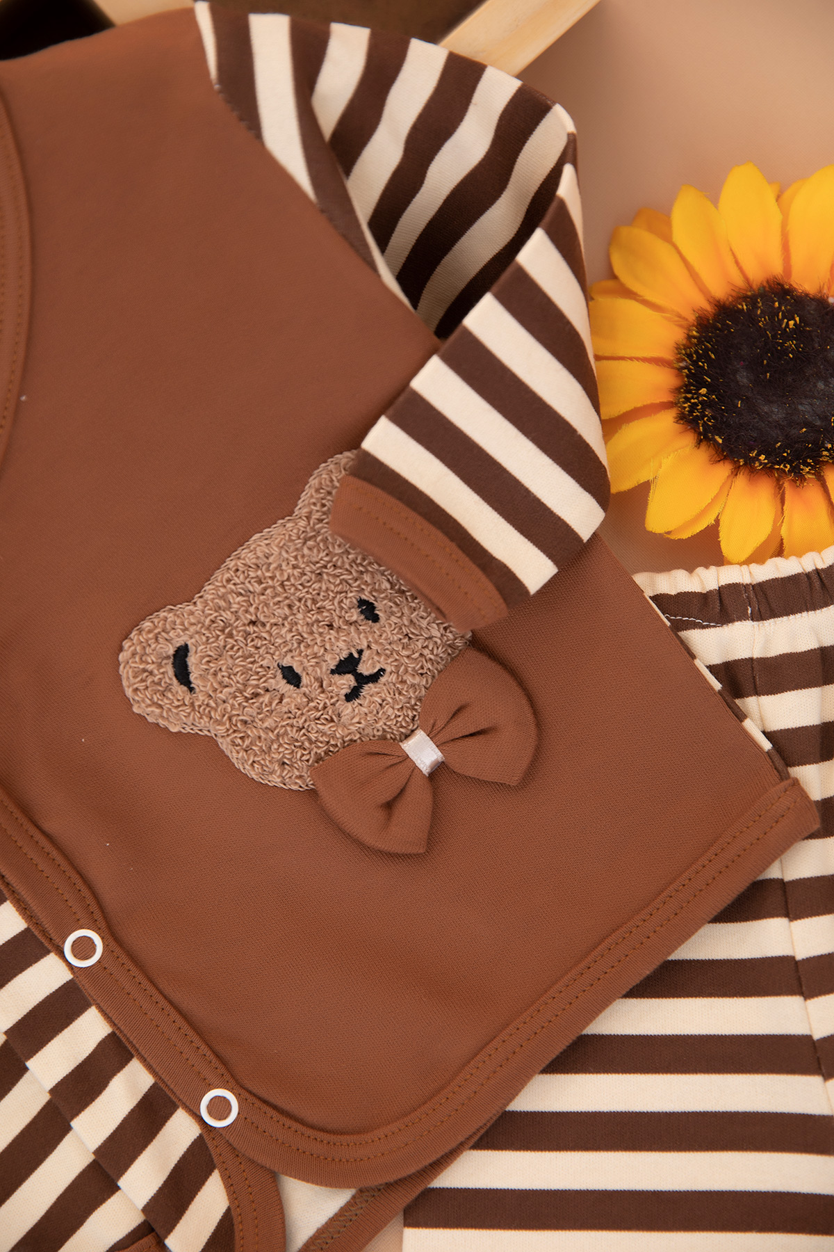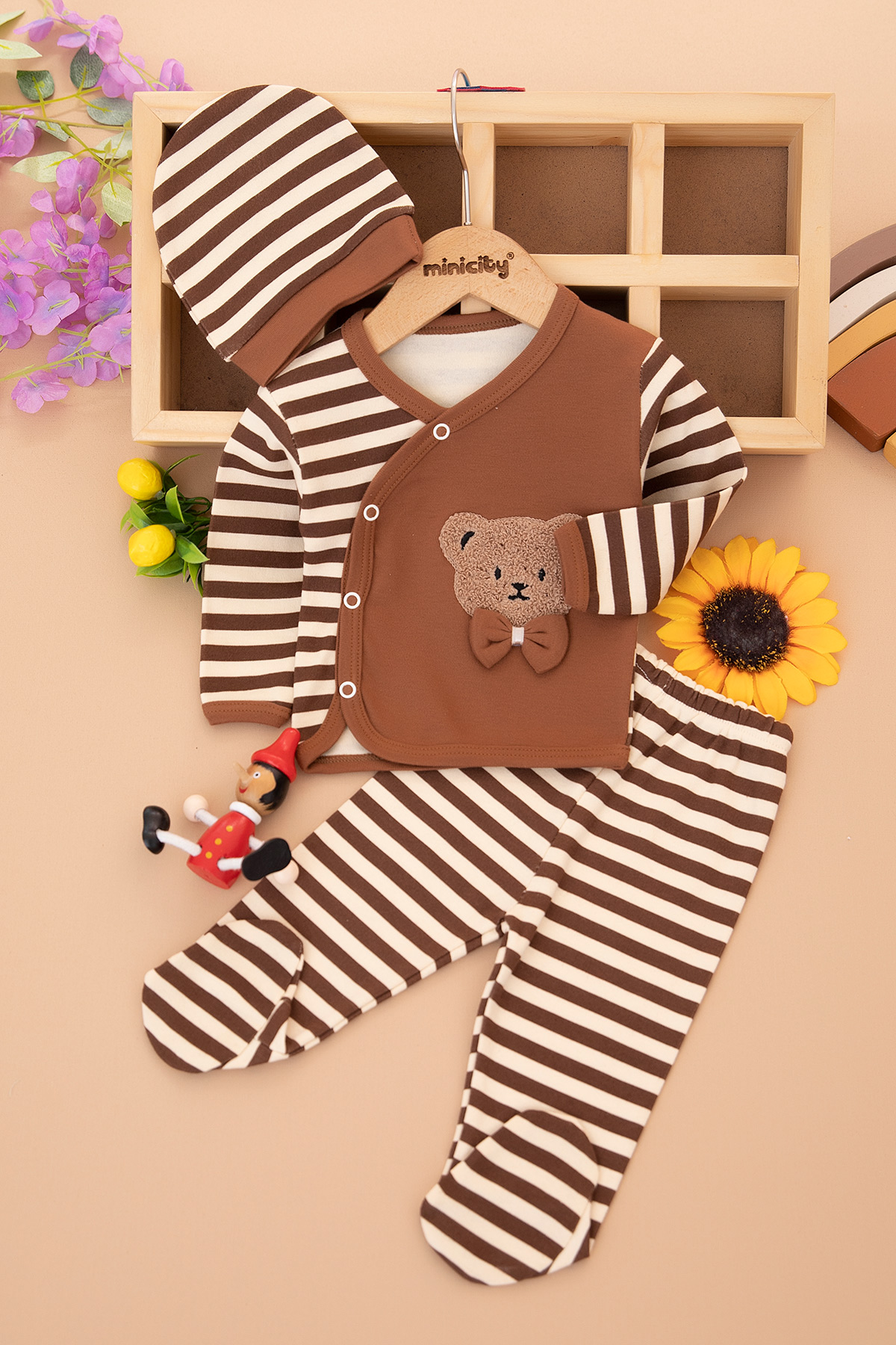 Erkek Bebek Çizgili Papyonlu Ayı Zıbın Takım - 4259 (0-3 Ay)