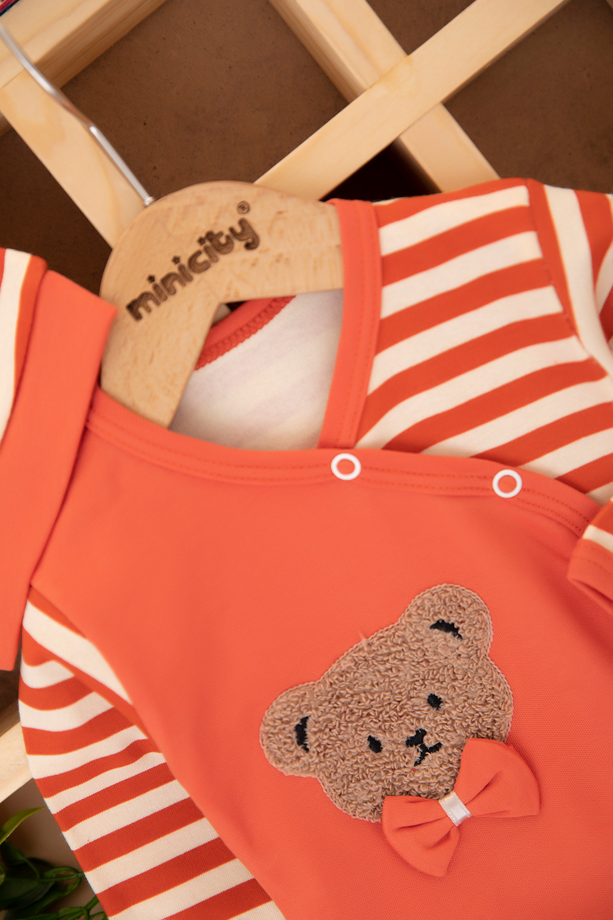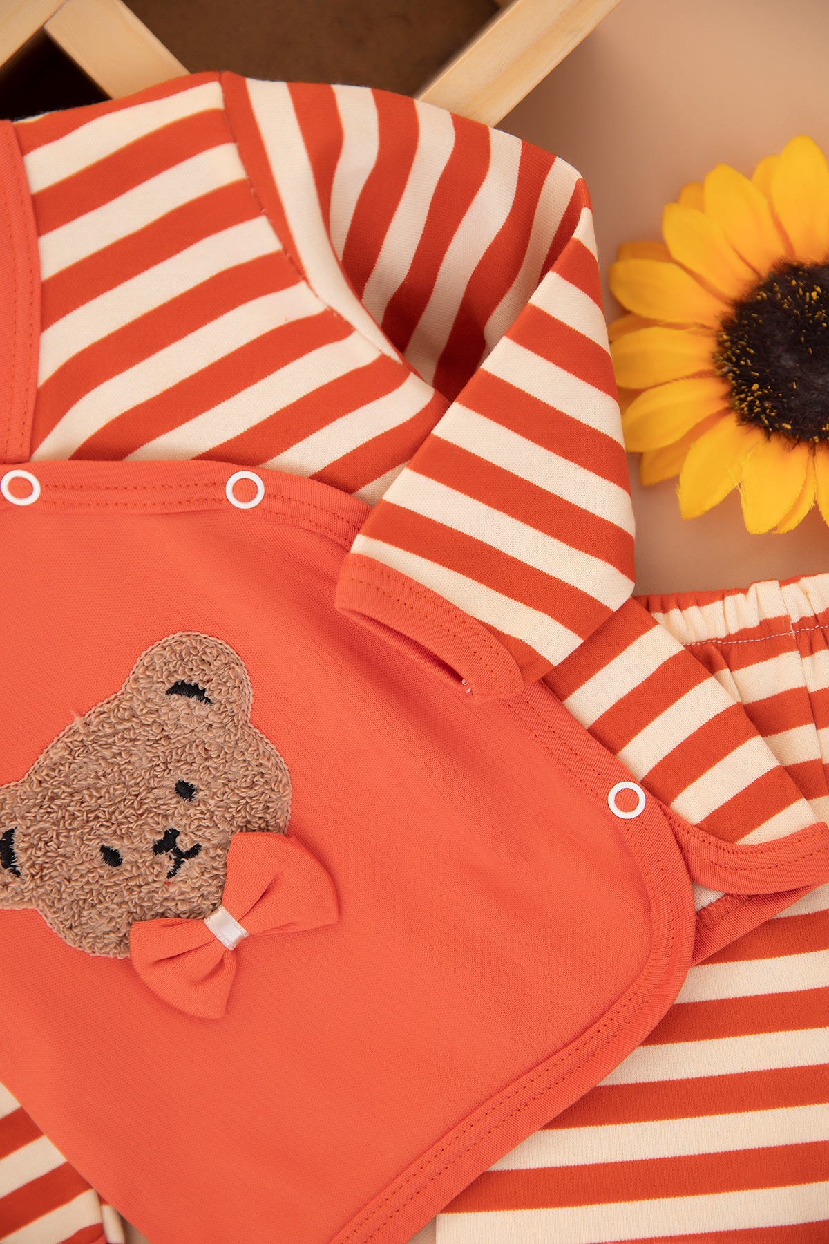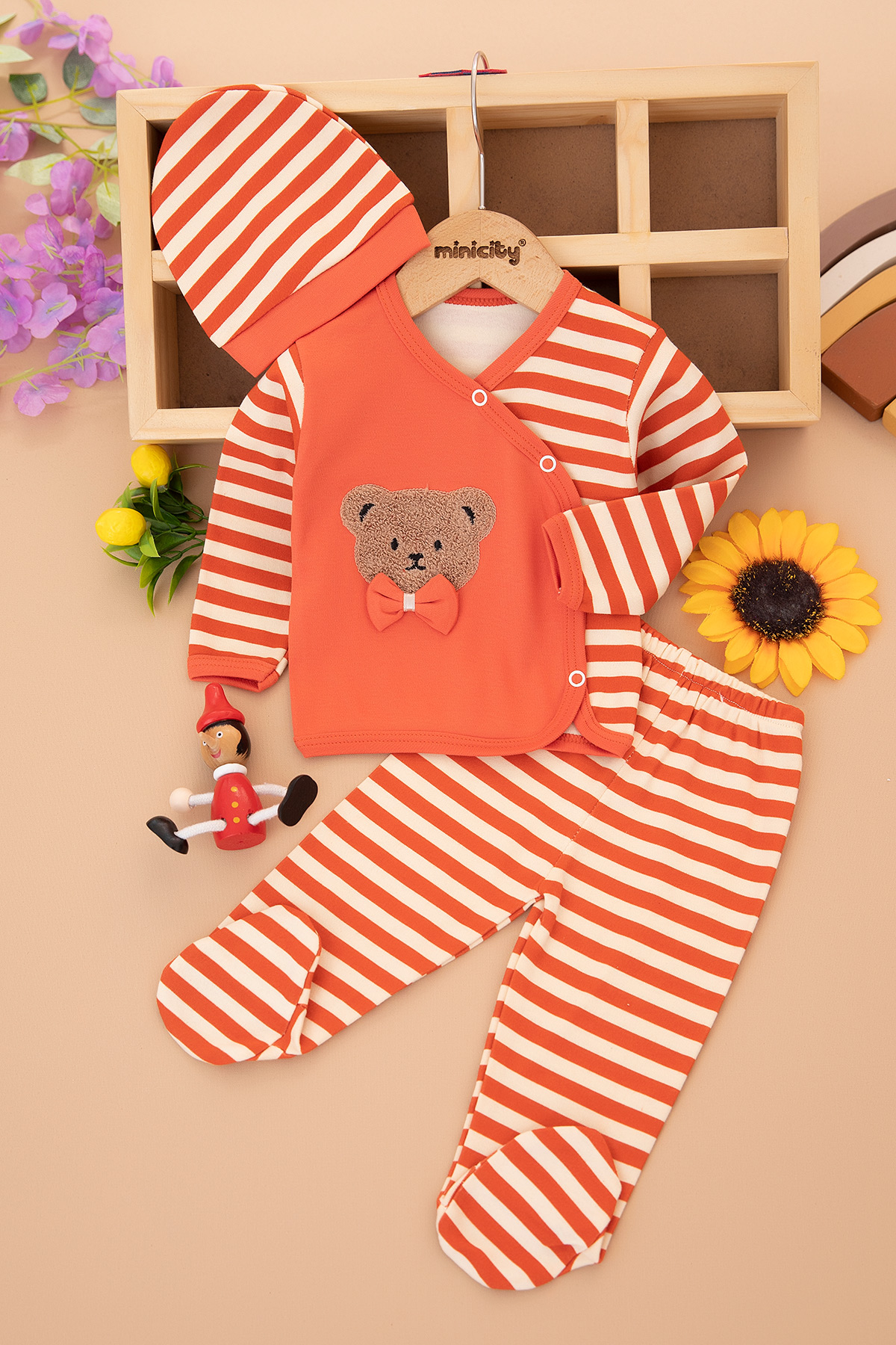 Erkek Bebek Çizgili Papyonlu Ayı Zıbın Takım - 4259 (0-3 Ay)