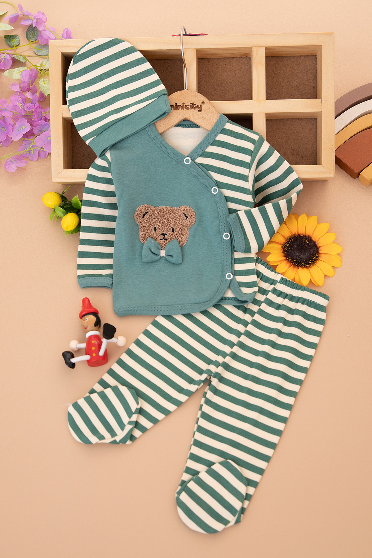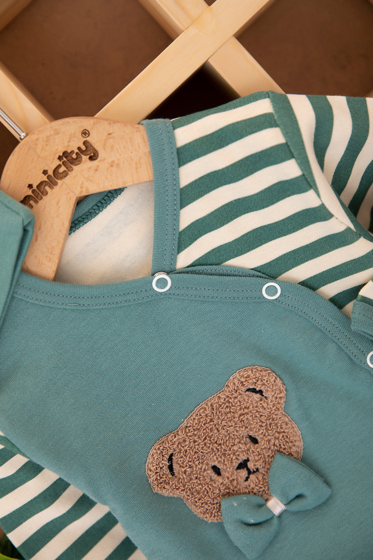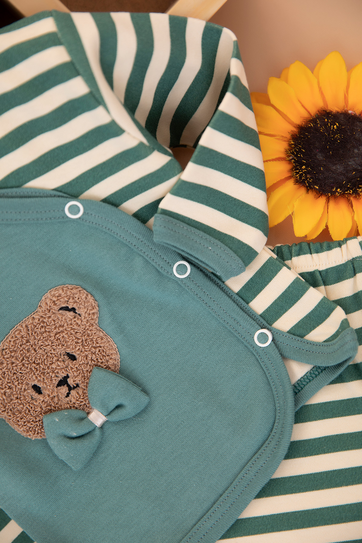 Erkek Bebek Çizgili Papyonlu Ayı Zıbın Takım - 4259 (0-3 Ay)