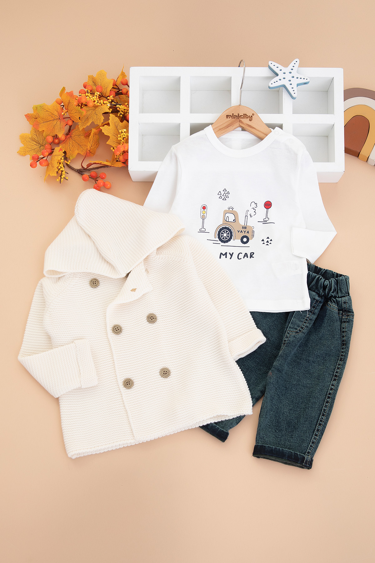 Erkek Bebek Triko Hırkalı Üçlü Takım - T-057 (6-24 Ay)