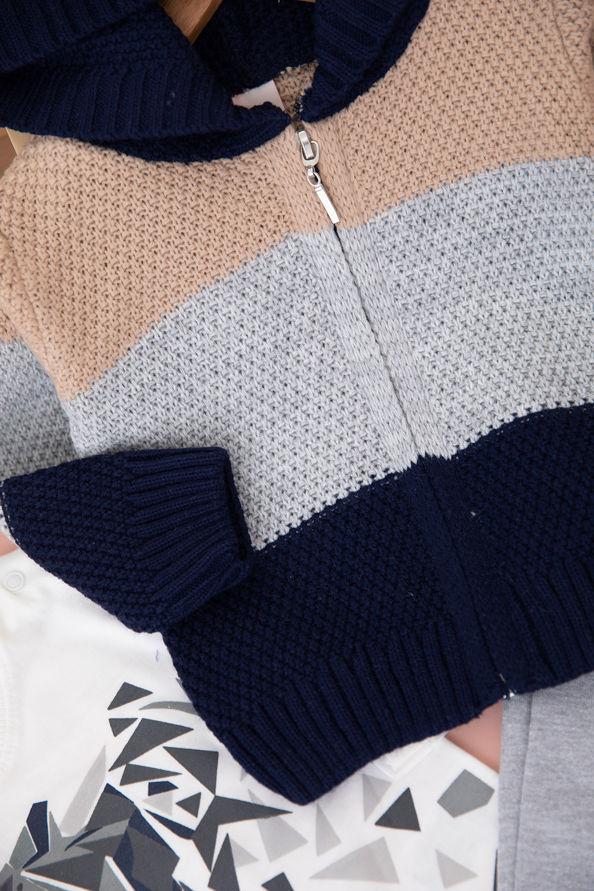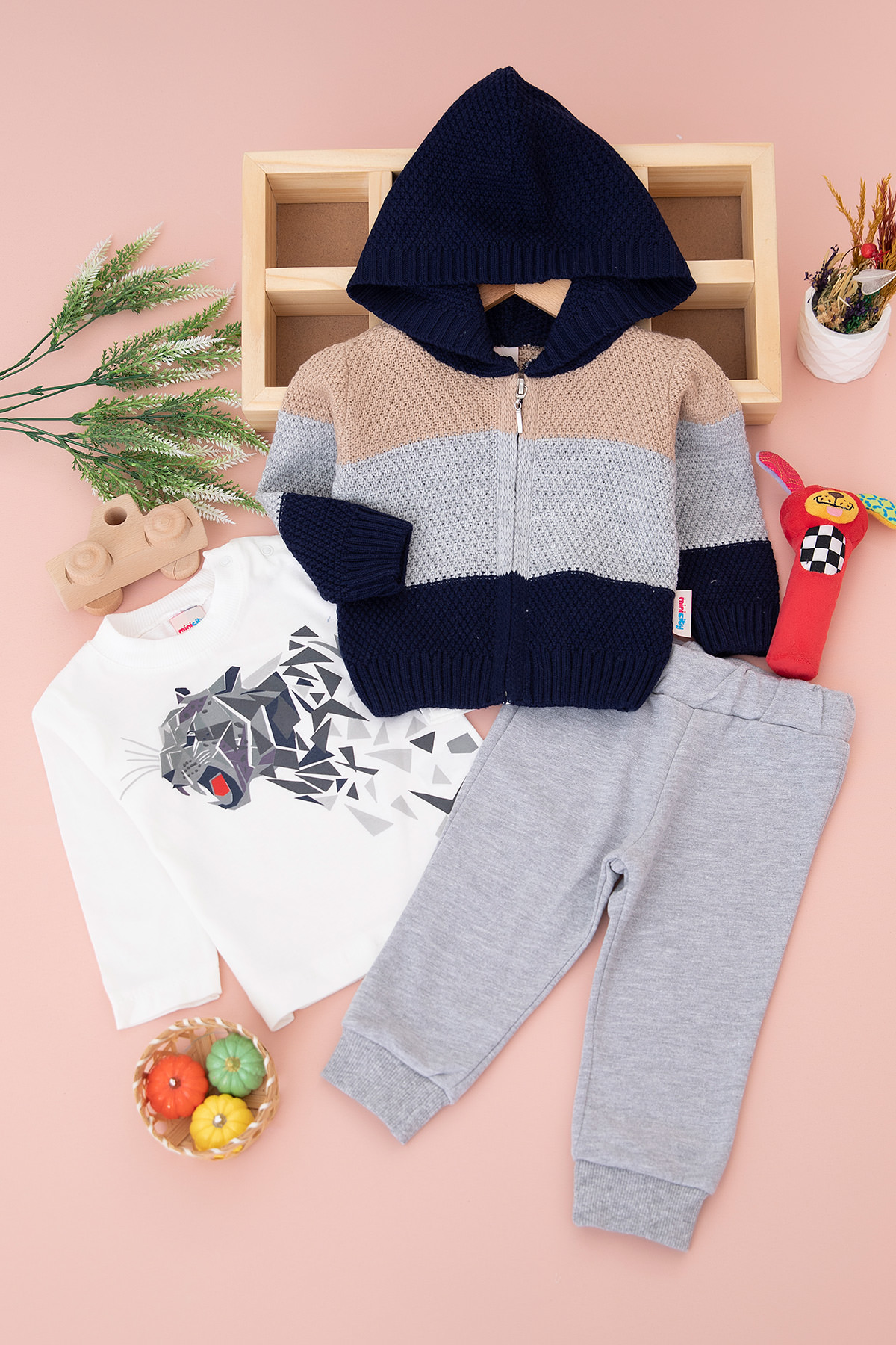 Erkek Bebek Üç Renk Triko 3`Lü Takım - 13788 (6-24 Ay)