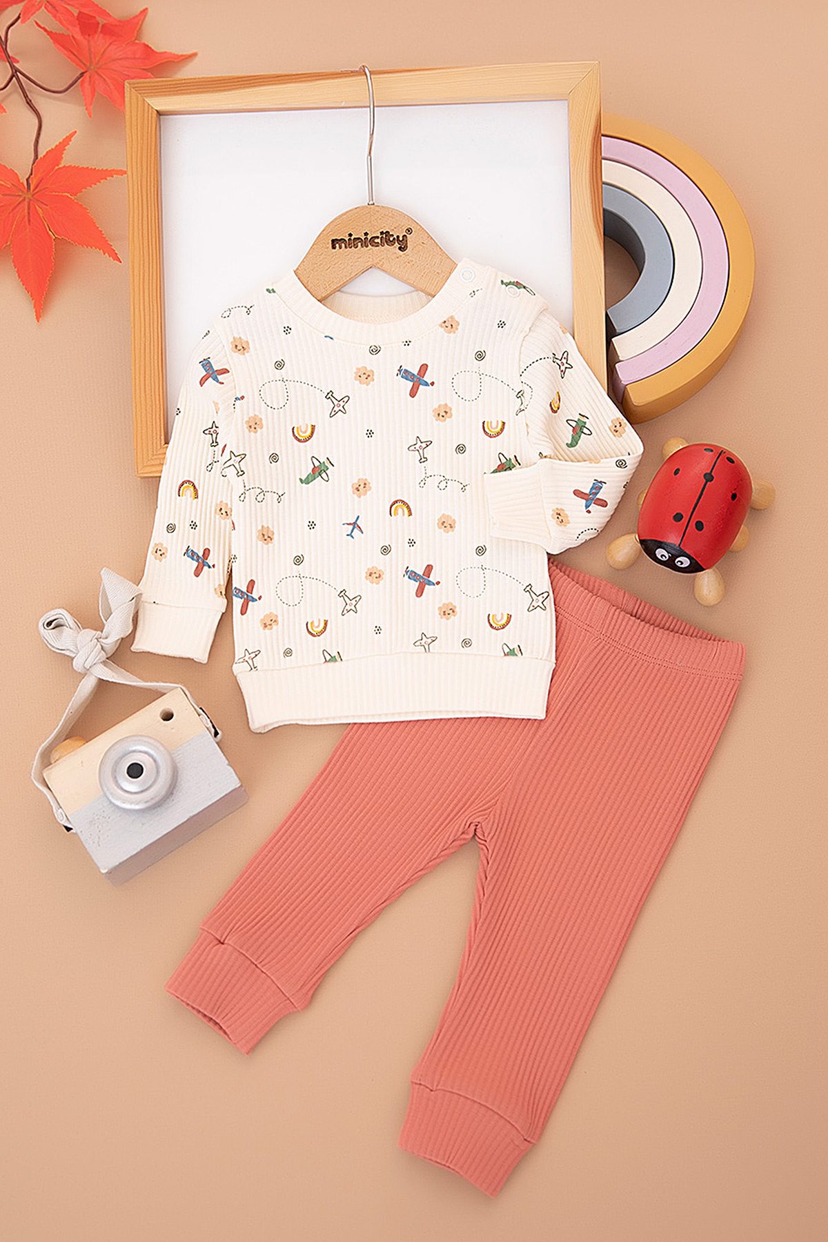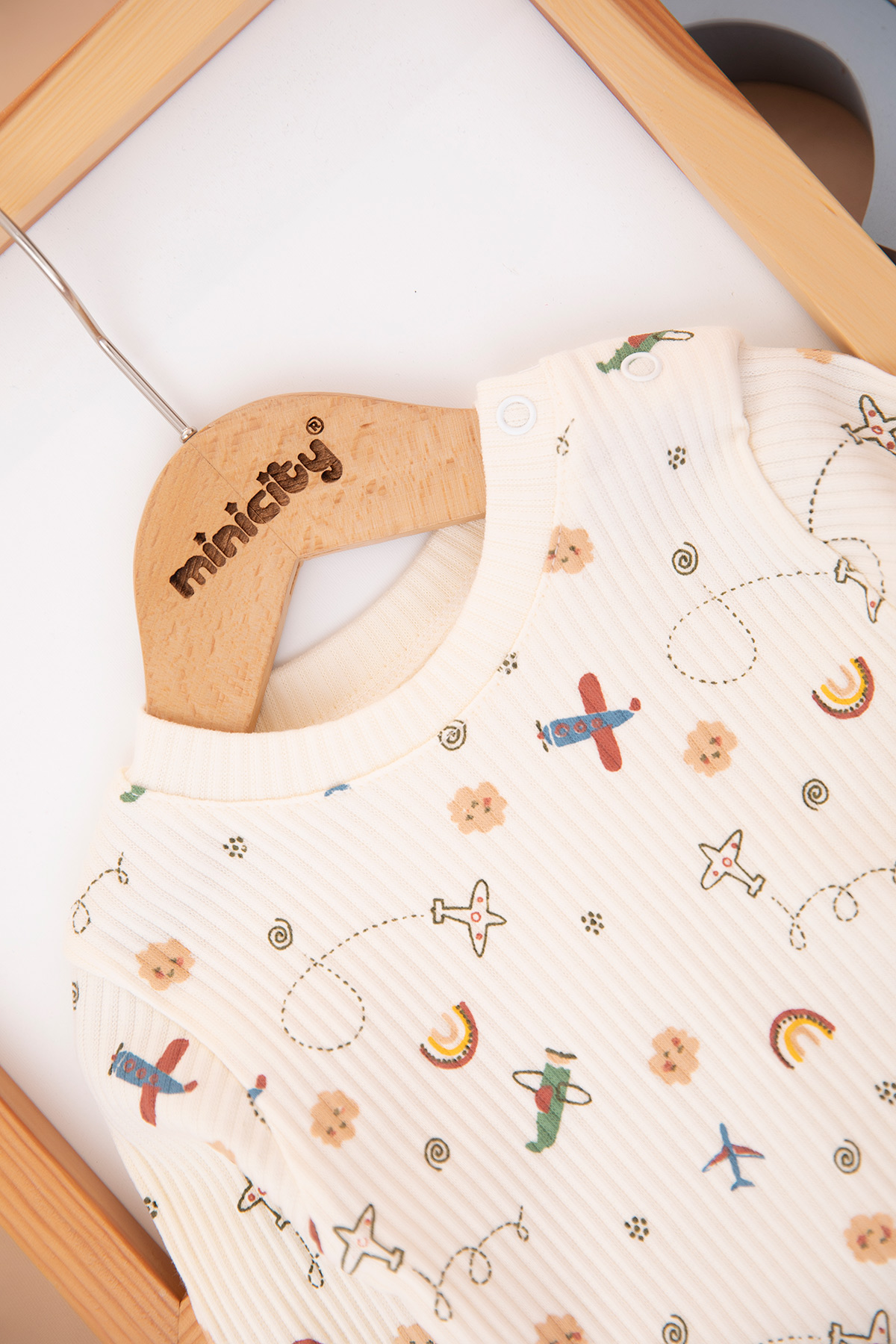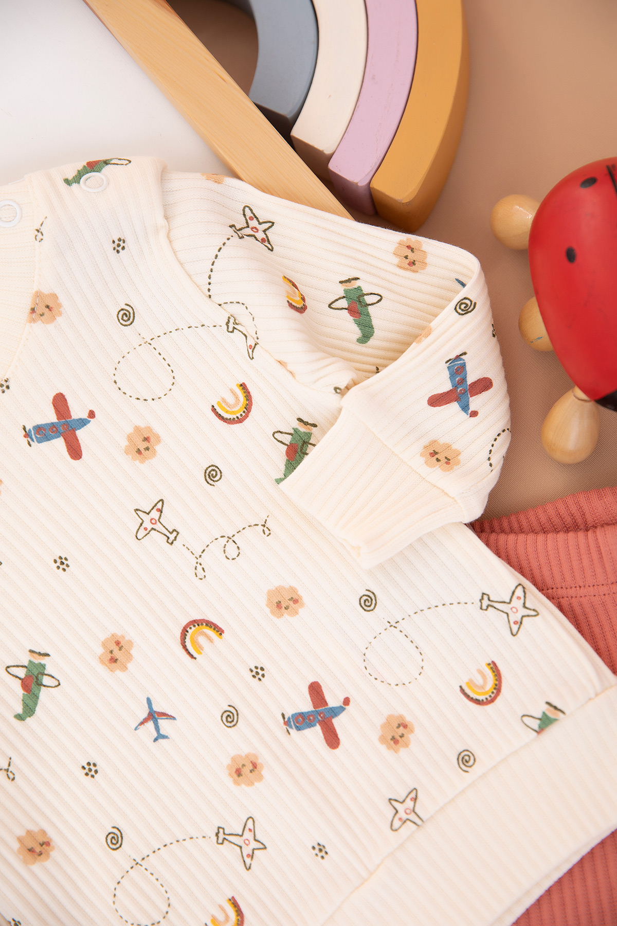 Erkek Bebek Uçak Baskılı Fitilli Takım - 1268 (3-12 Ay)
