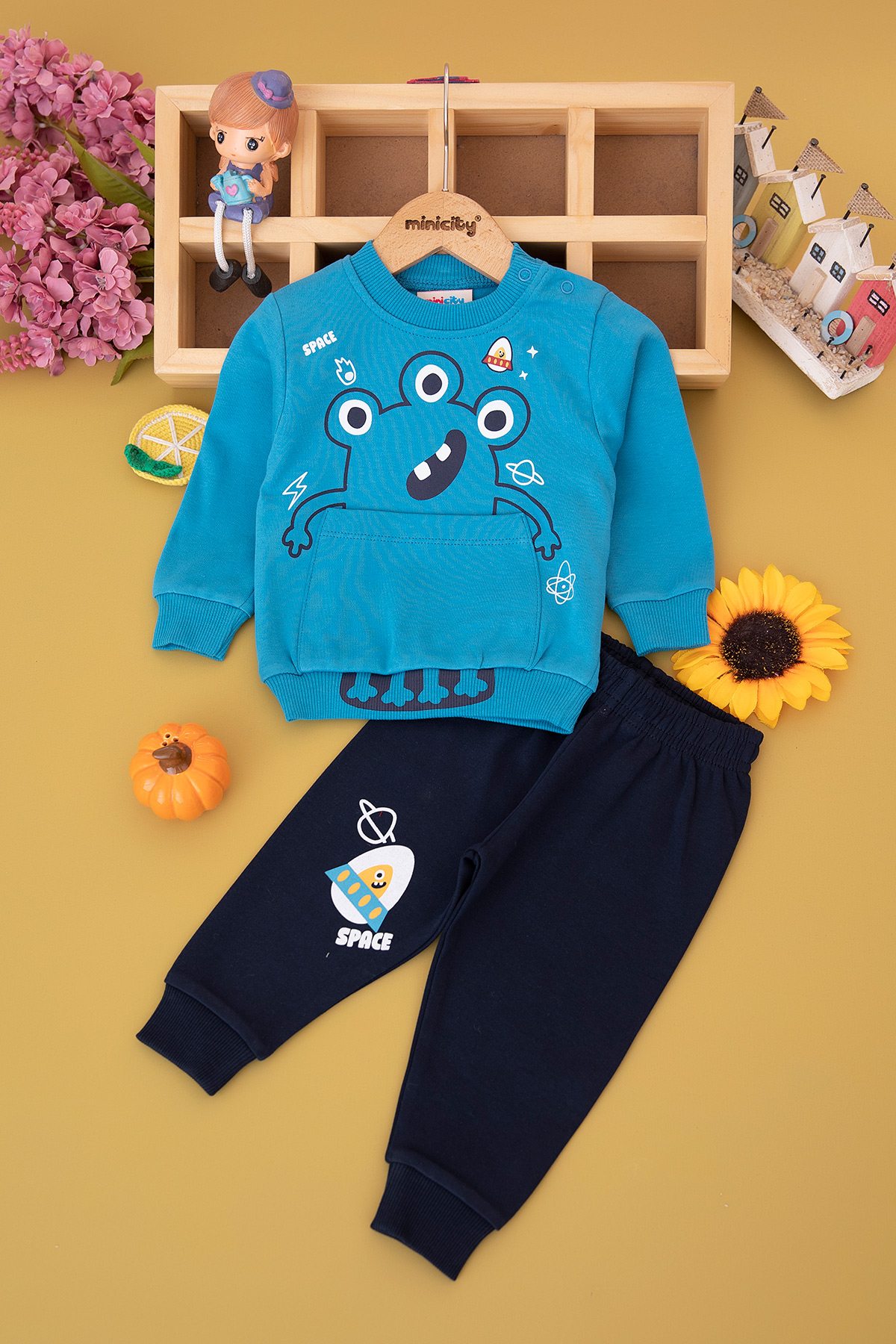 Erkek Bebek Uzay Baskılı Takım - 26134 (9-24 Ay)