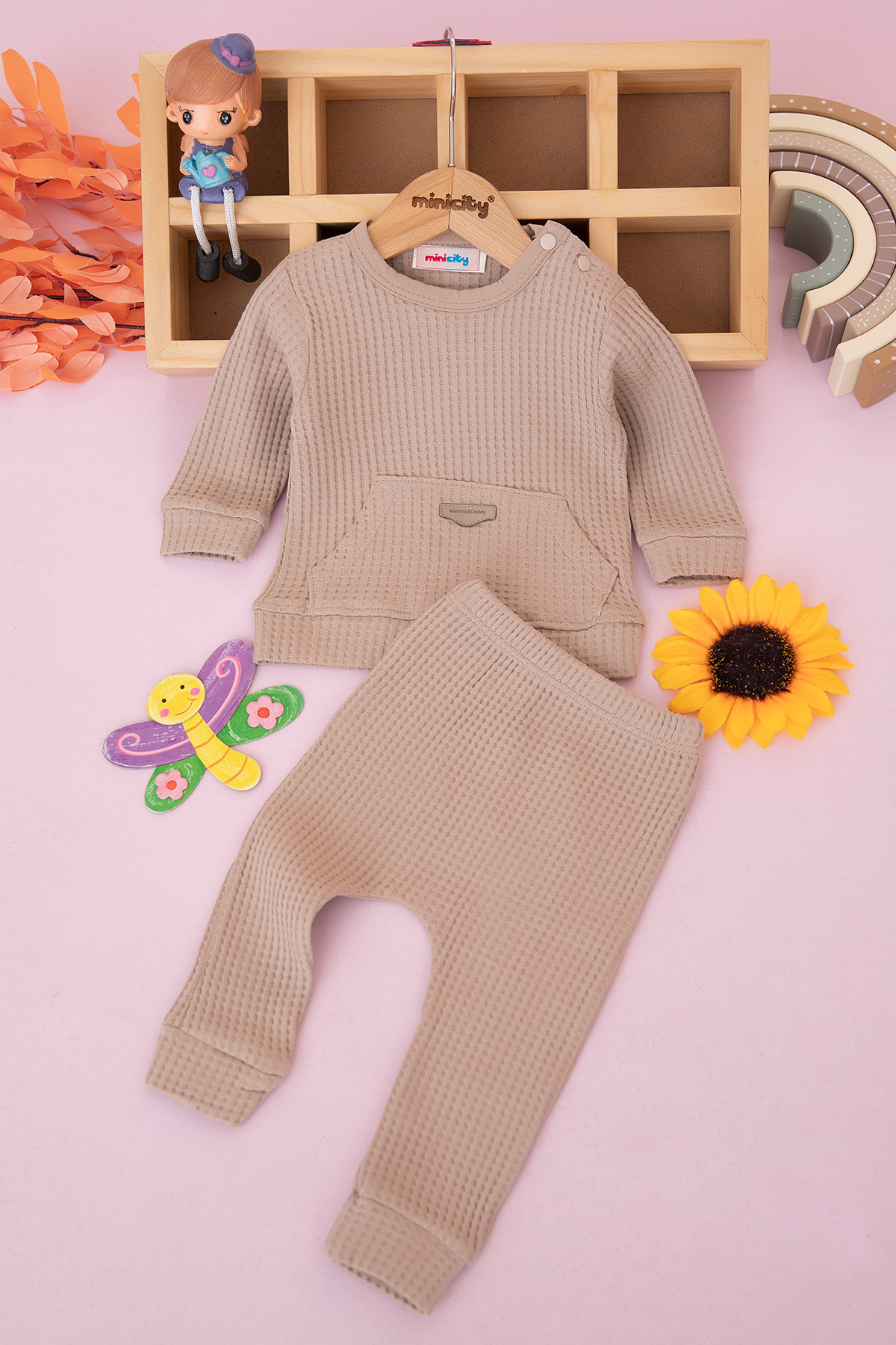 Erkek Bebek Waffle Kanguru Cep Takım - 10154 (3-12 Ay)