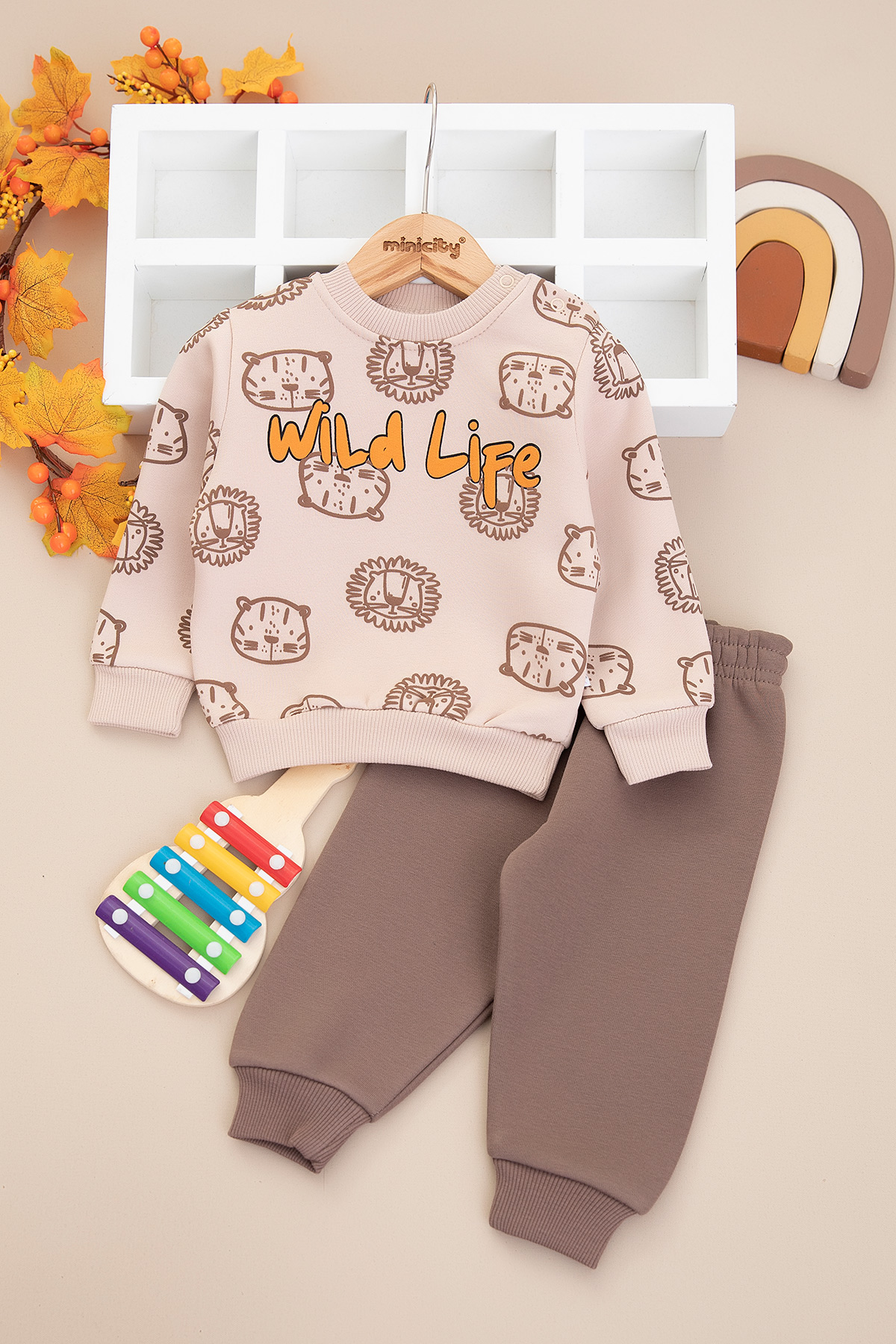 Erkek Bebek Wild Life Baskılı Üçip Takım - 25929 (9-24 Ay)