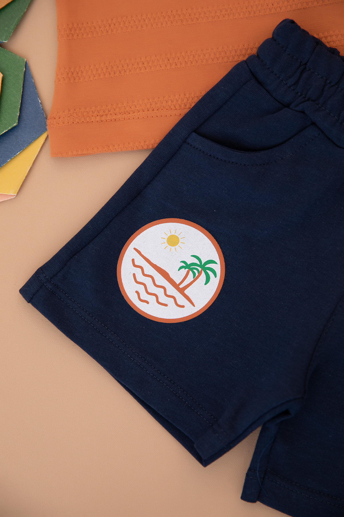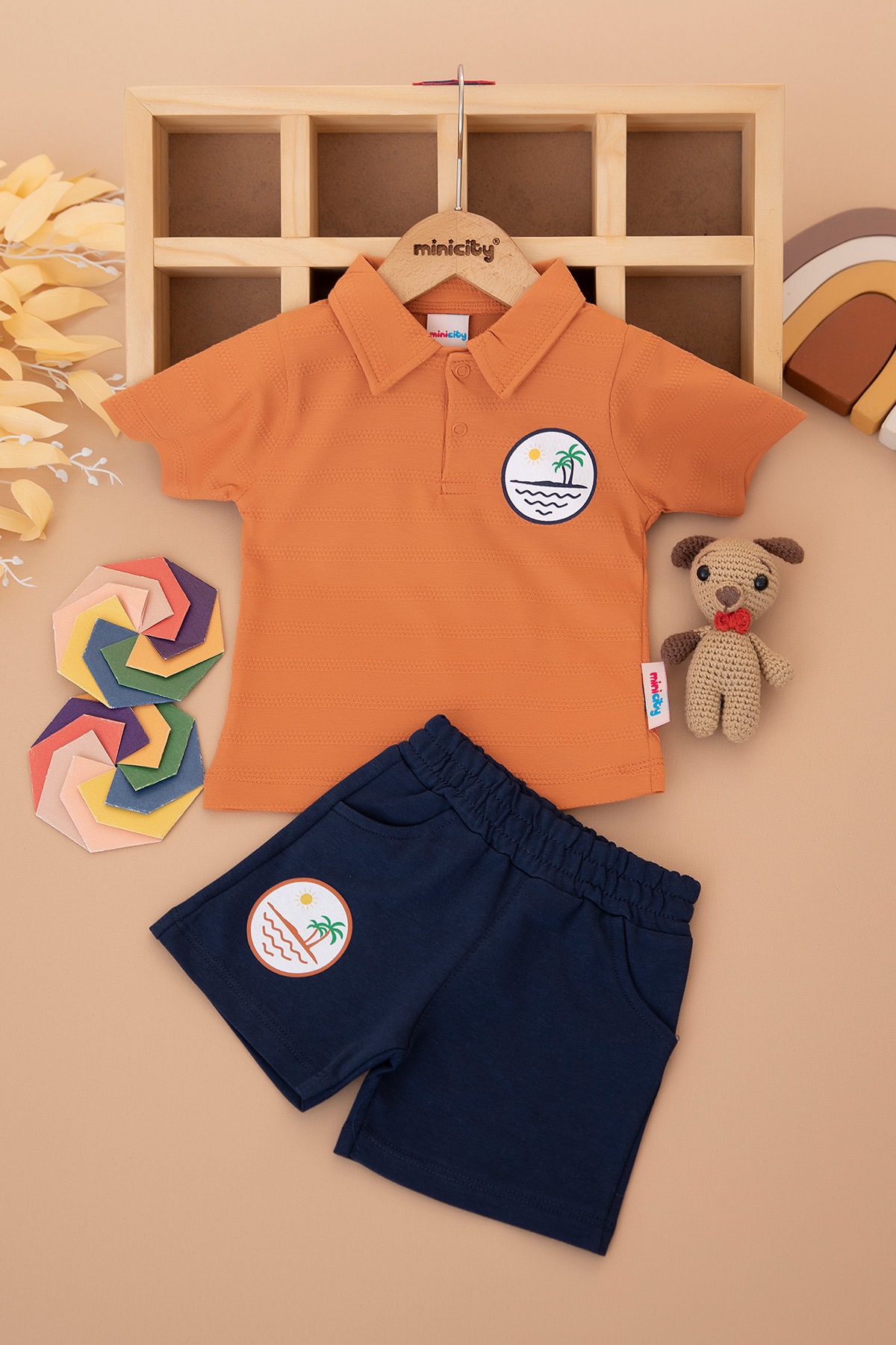 Erkek Bebek Yakalı Sırt Baskılıl Şortlu Takım - 25443 (9-24 Ay)
