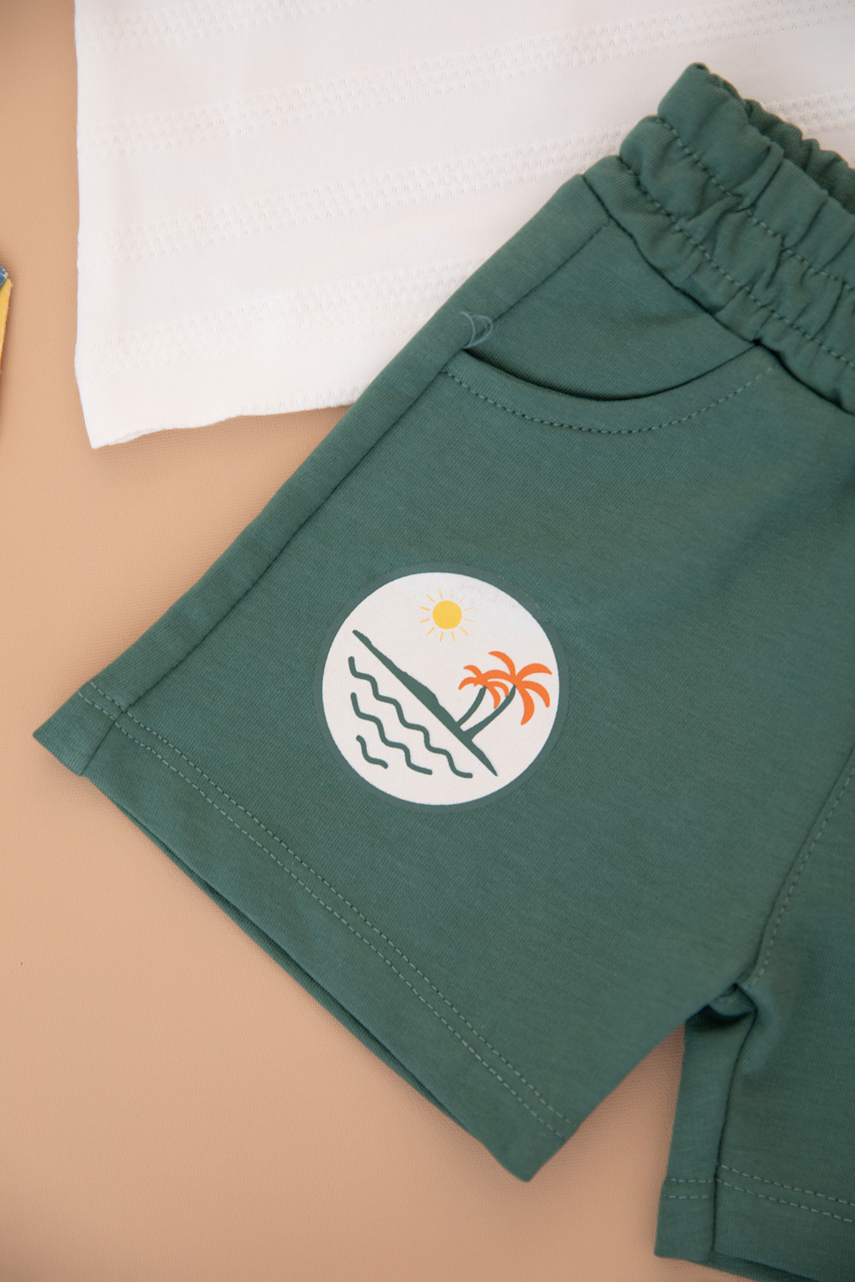 Erkek Bebek Yakalı Sırt Baskılıl Şortlu Takım - 25443 (9-24 Ay)
