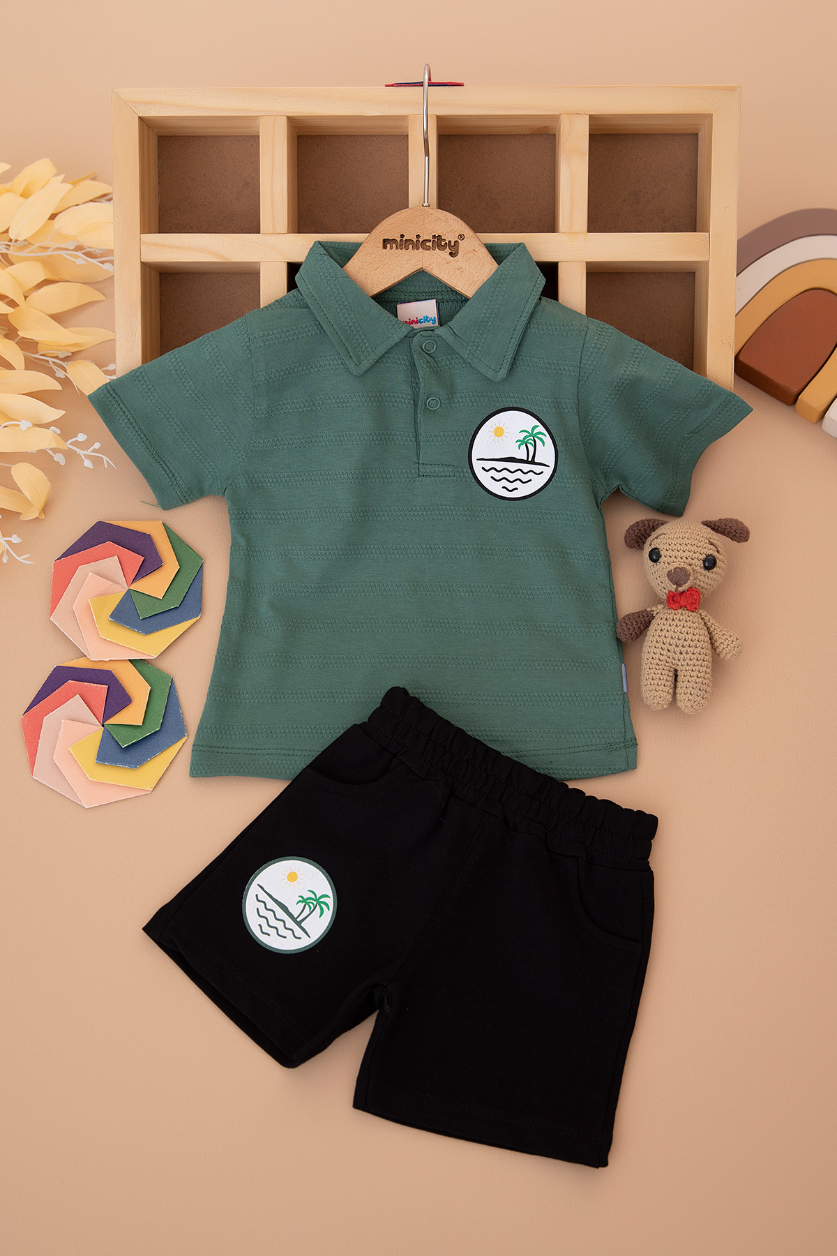Erkek Bebek Yakalı Sırt Baskılıl Şortlu Takım - 25443 (9-24 Ay)