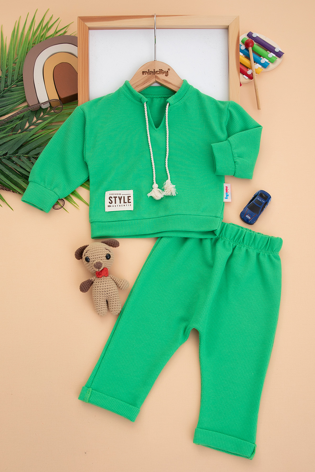 Erkek Bebek Yakası İpli Waffle Takım - 2344 (6-24 Ay)