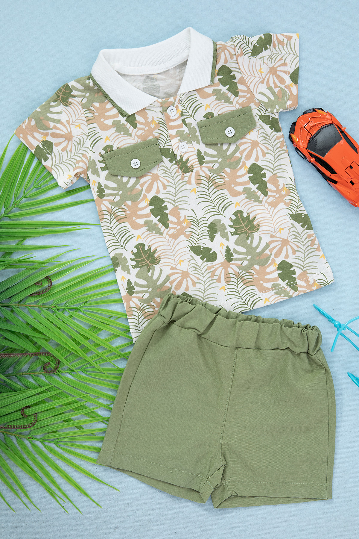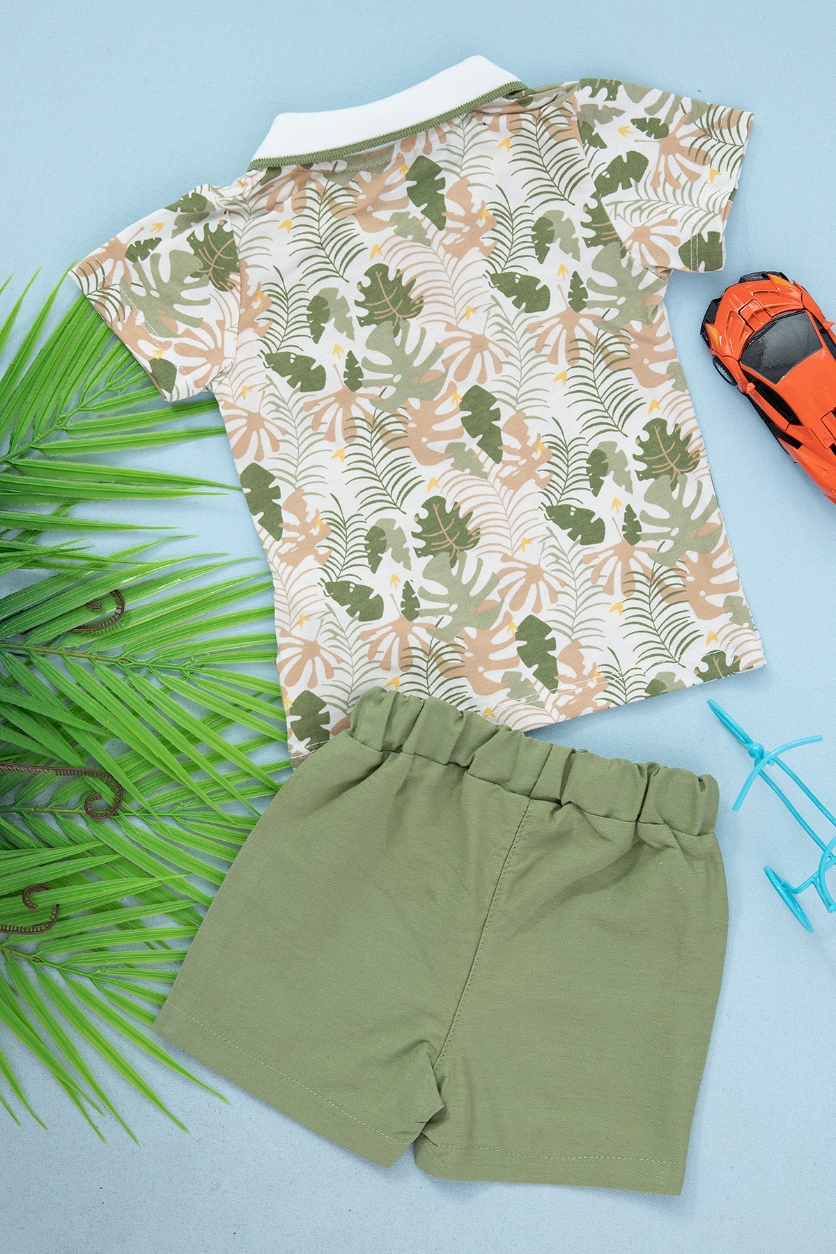 Erkek Bebek Yaprak Baskılı Şortlu Takım - 222020190 (6-24 Ay)